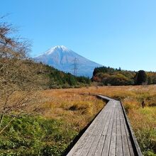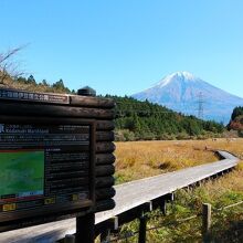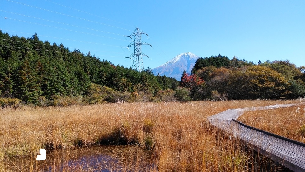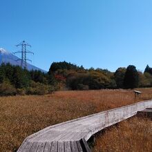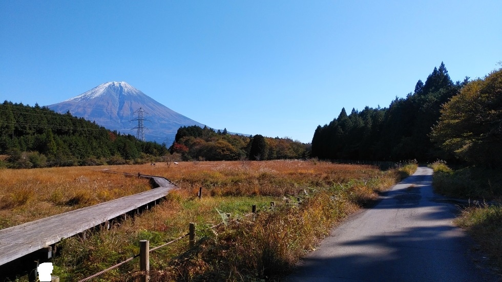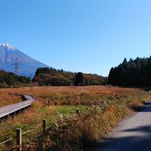 木道をしばらく進むと、富士山も見ることができた。鉄塔が景観を遮るものの、まずまずの風景を楽しめた。