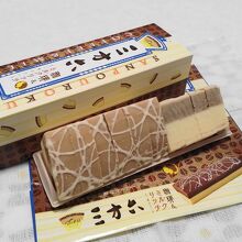 コーヒーバウムクーヘンと濃厚ミルクバウムクーヘンを合わせてあります。