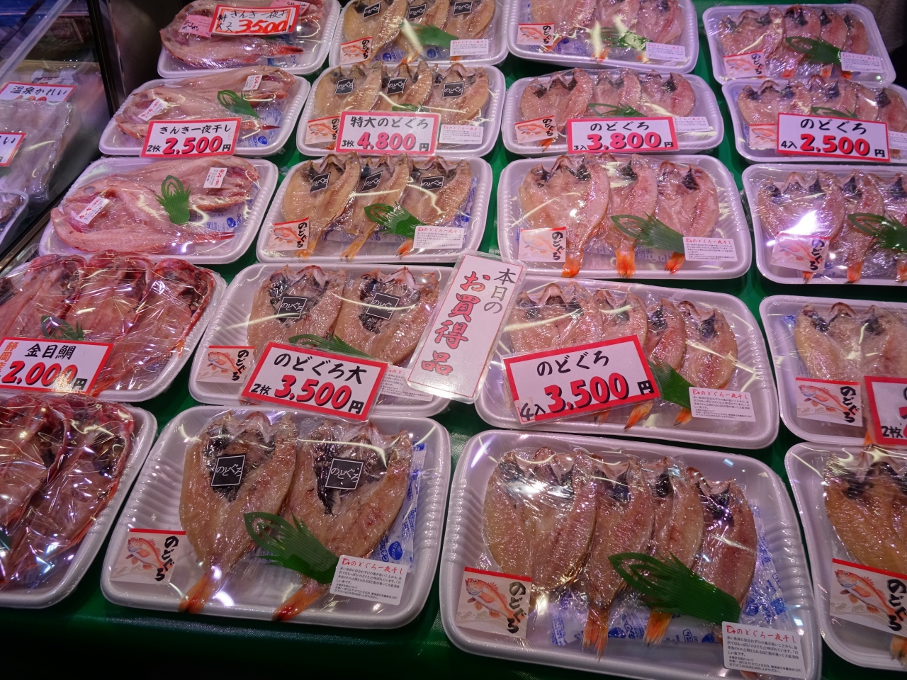やはり新鮮な魚が一番です。この時期は蟹、のどぐろが多く、まだぶりなどは早かった気がします。海鮮丼、回転寿司など飲食もいろいろとお店があり選べます。口コミのよいお店は渋滞(並んで)います。時間差で利用するとよいと思います。