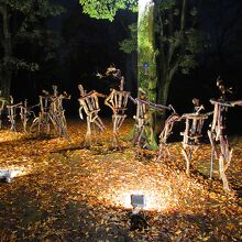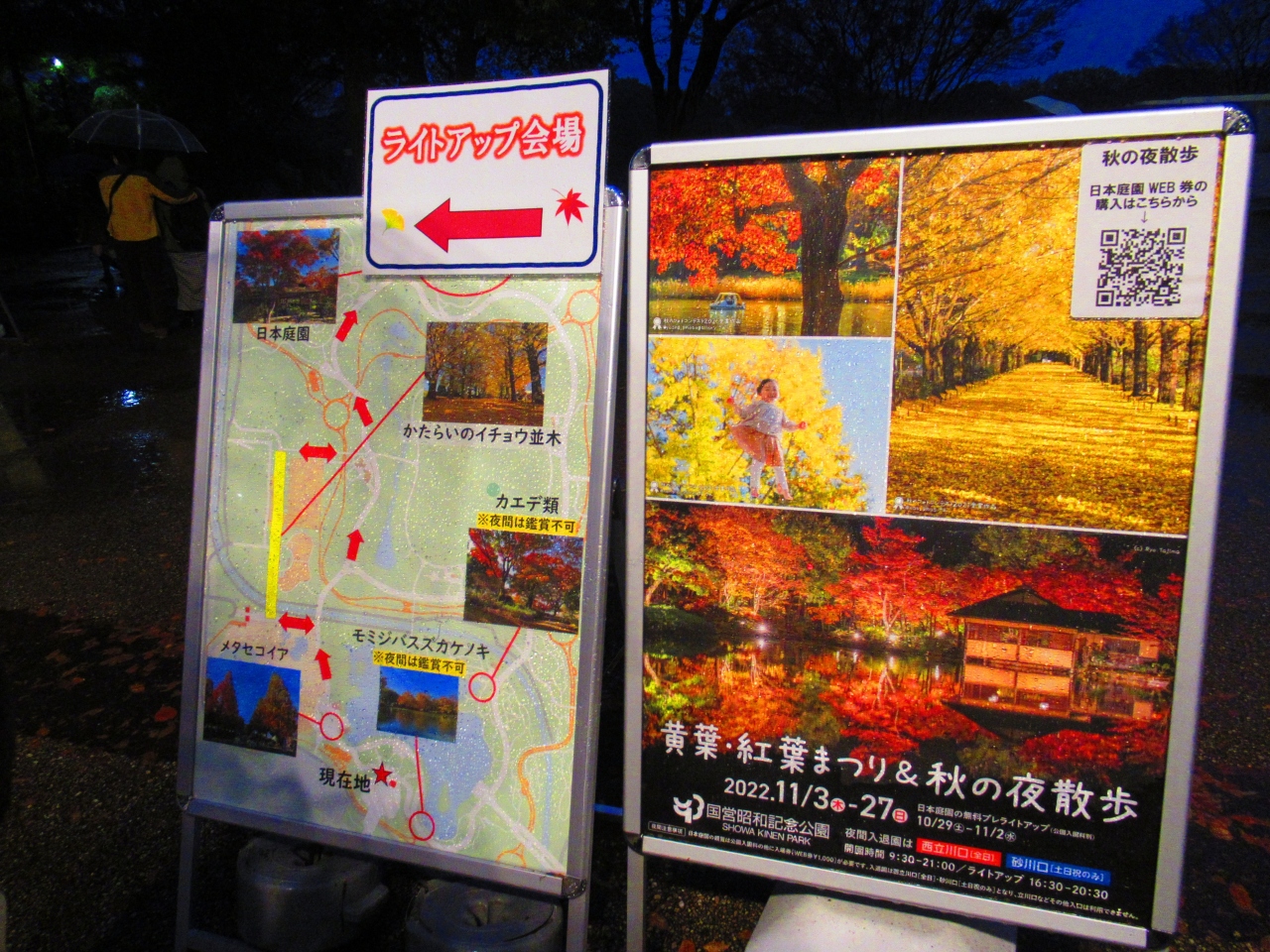 11月に開催している、紅葉したイチョウ並木や日本庭園をライトアップした「秋の夜散歩」に行ってきました。日本庭園は別途入園料が\1,000かかりますが、池に映った紅葉やアート作品などとてもキレイでした。