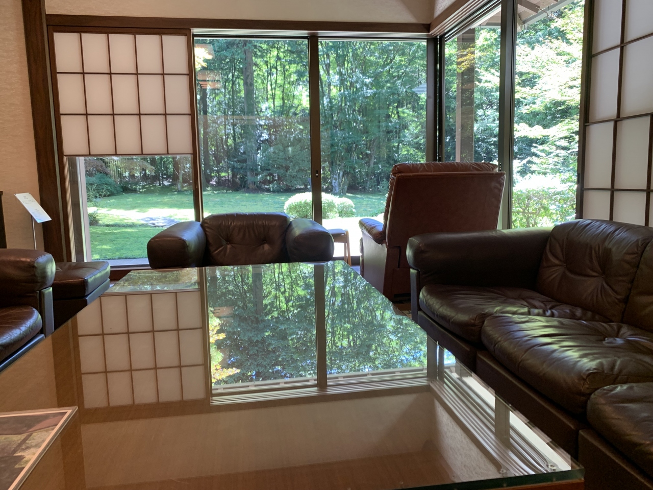 インターやアウトレットから車で近いため、駐車場は平日でも混んでいる。そして人々が向かうのは岸邸よりも隣のとらや。岸邸は静かで見学者は少な目だった。建築家が晩年に設計したそうで、数寄屋風な外観になっている。書斎や応接室を見ると、政治家だったと感じられる広さ。来客が多かったのだろう。ソファには座る事が出来て、静かな庭をゆったりと眺められる。