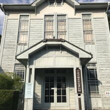 日本建築の古い木造建物に混じり、洋風建物ながら町並みに溶け込んでいる。