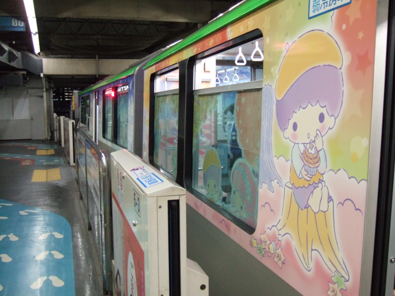 1本列車を待っていたら、娘が乗りたがっていたキキ&ララモノレールがやってきて、娘は大喜びでした。