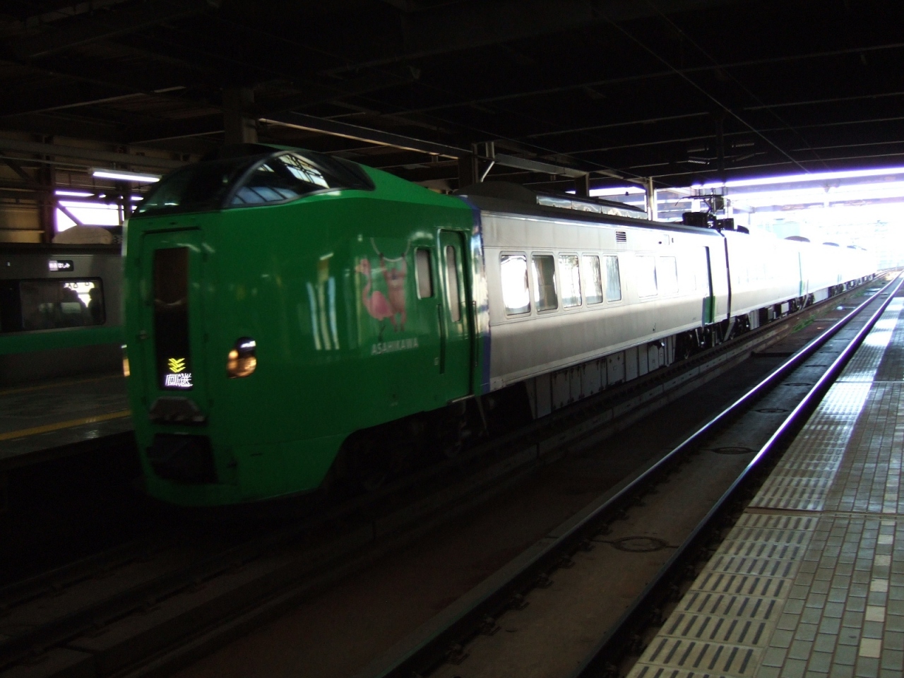 札幌から旭川までを結んでいる電車特急。普通車の指定席はカムイの方が快適ですが、ライラックにはグリーン車があります。普通車と違い、2列+1列のゆったりした造りで、シートも幅が広くて革張りですが、寒い時には冷たい感じがしました。