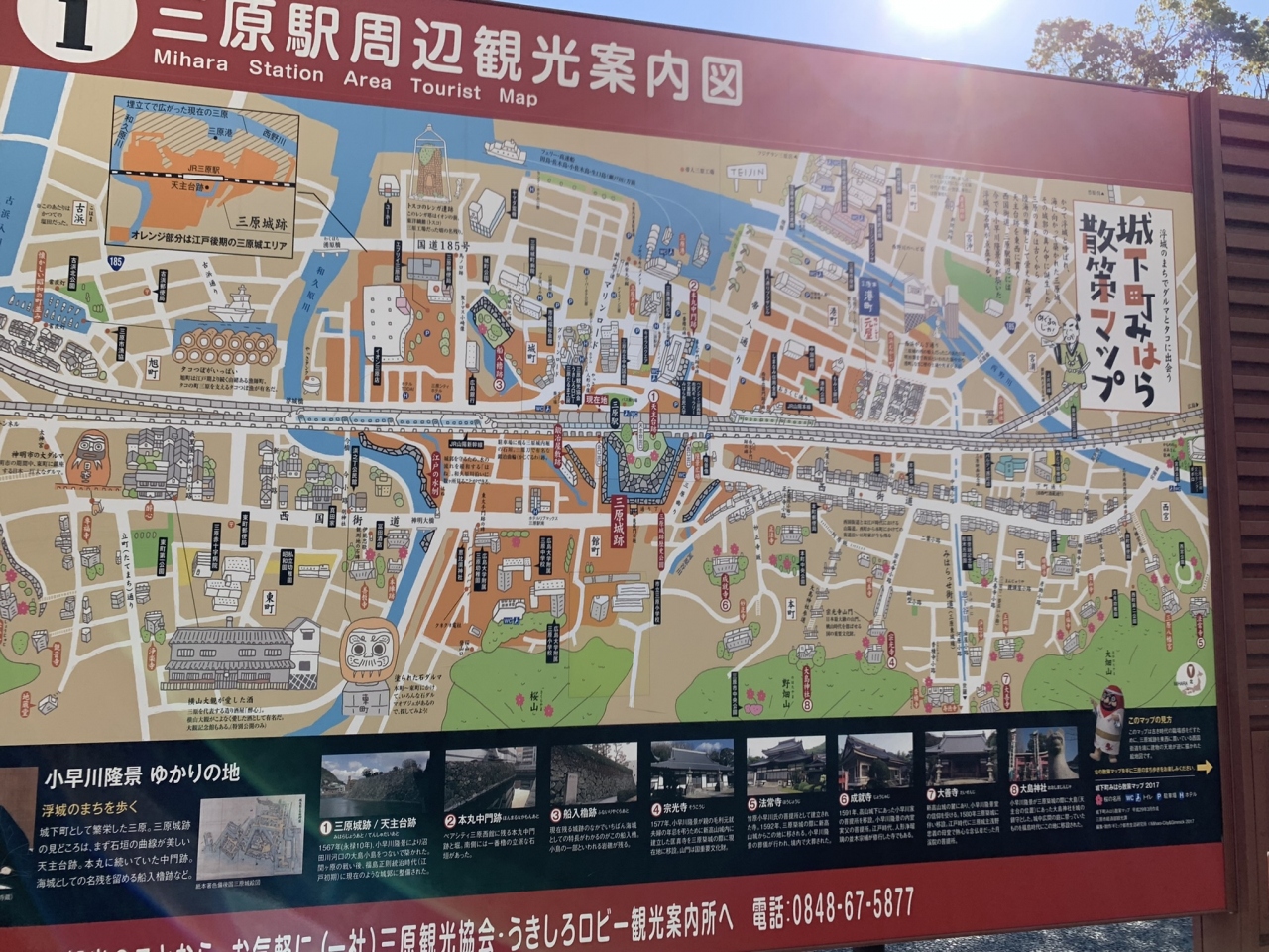 竹原駅を出て右のほうに観光案内所があります。訪れたときは大勢の人がいて混雑していましたので利用はしませんでしたが、パンフレットや地図をあらかじめもらっておくと良いと思います。駅から降りて、商店街の通りが駅前にありました。そちらを通って町並み保存地区に向かいました。