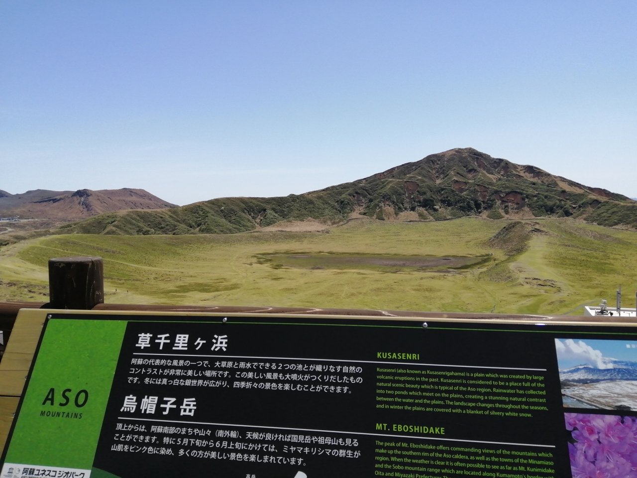 草千里からでもよく見えますが、長い階段を上がった先にある草千里展望所からさらにきれいに見えました。