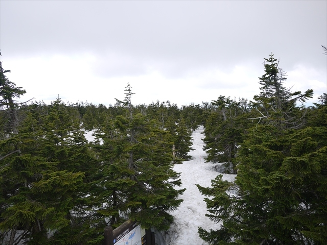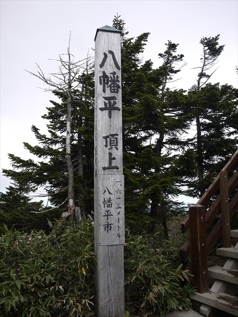 ドラゴンアイを見に行ったついでにせっかくだからと八幡平の山頂に行ってみました.山頂と言っても,特別なピークがあるわけではなく,展望台と八幡平山頂と書かれた標識があるだけです.雪のない時期であれば駐車場から20分くらいで行けるのではないかと思いますが,5月のこの時期にはまだかなりの積雪があり,歩くのは結構大変でしたし,訪れる人も余りいないようでした.