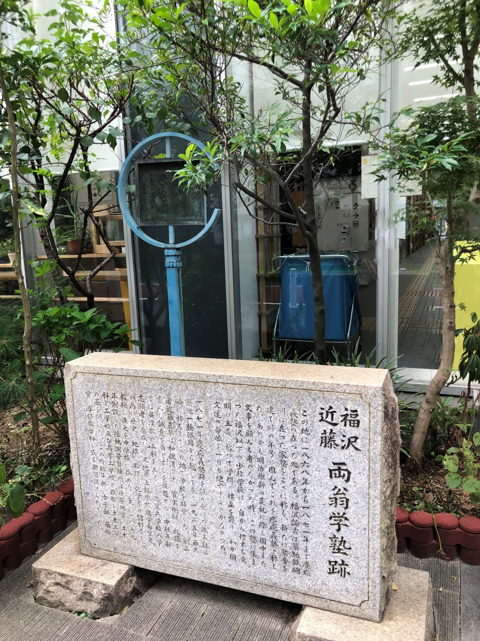 浜松町駅から汐留に向かう途中に、この碑がありました。浜松町駅から徒歩5分ほどのところです。かつて、福沢諭吉の慶應義塾と近藤真琴の攻玉社があった場所とのことで碑が残されています。慶應義塾は現在の三田に移るまでこの場所にあり、その慶應義塾が移転した後に攻玉社が跡地を譲り受けたそうです。日本の学問の歴史を物語る貴重なものだと思いました。現在は、「港区立エコプラザ」という区の施設になっています。