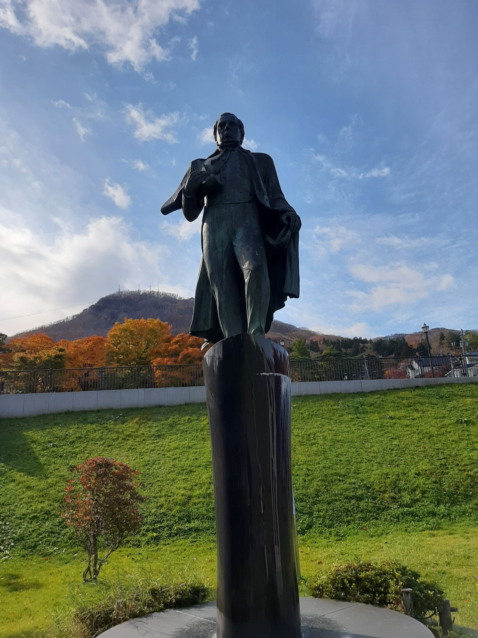 基坂を上っていくと、公園のような所に立派な像が立っていました。