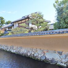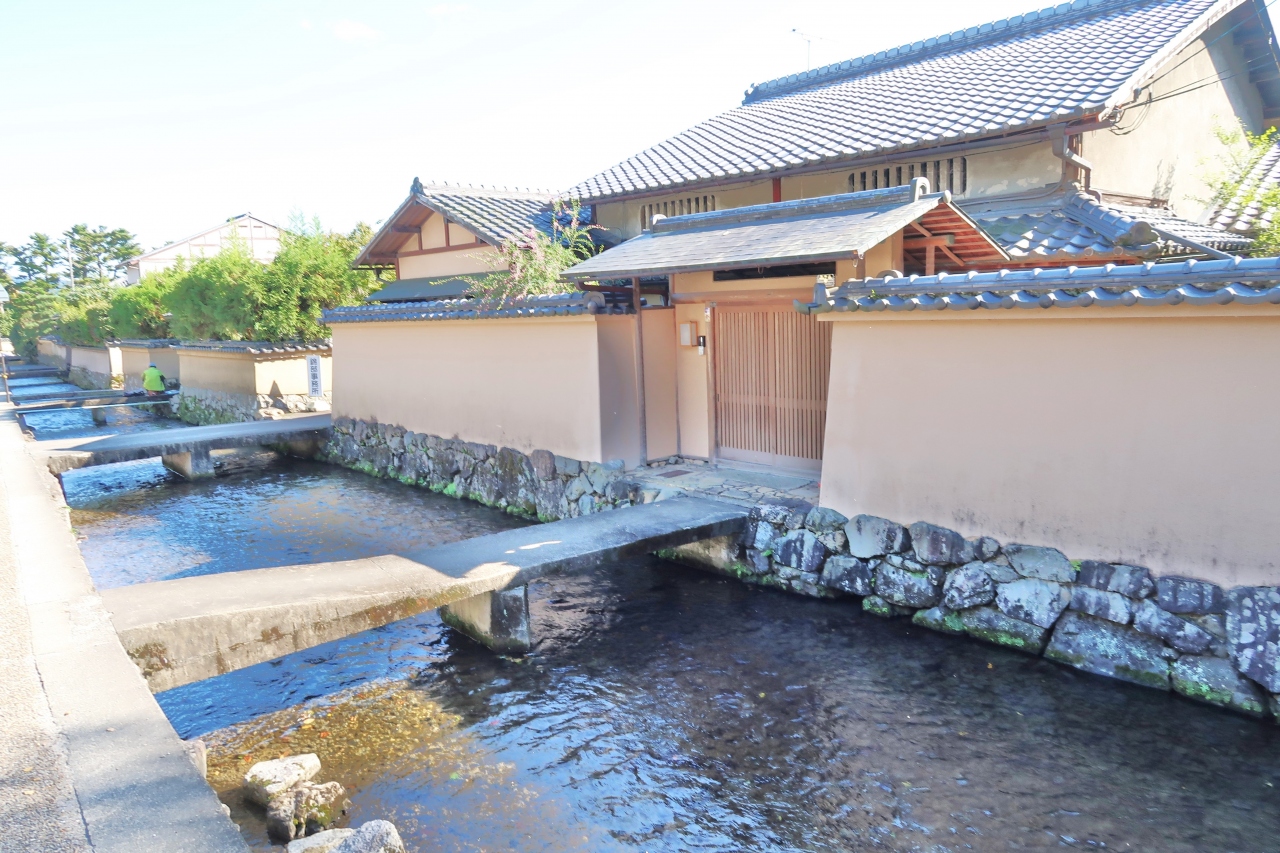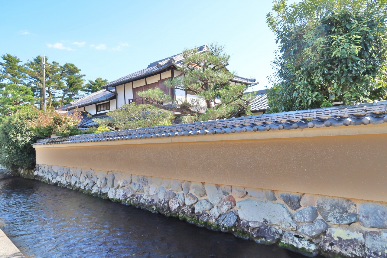 上賀茂神社の境内を流れる「ならの小川」が明神川と名前を変えた辺りに立ち並ぶ、神官たちのお屋敷街です。公道から邸宅の入口へ架けられた小さな石橋が明神川の上に並び、独特の景観となっていました。