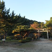 萩城跡にある公園で、砂州の先端にある小山の上に築城されていたため、萩の城下町からも良く見えます。現在は城跡としては建物は残っておらず、神社と公園入口に若干の店舗があるのみで、栄えた城下の後としては閑散としています。
