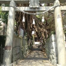 鳥居をくぐると「奈良尾のアコウ」が圧巻で、枝が第2の鳥居のようになっています。
