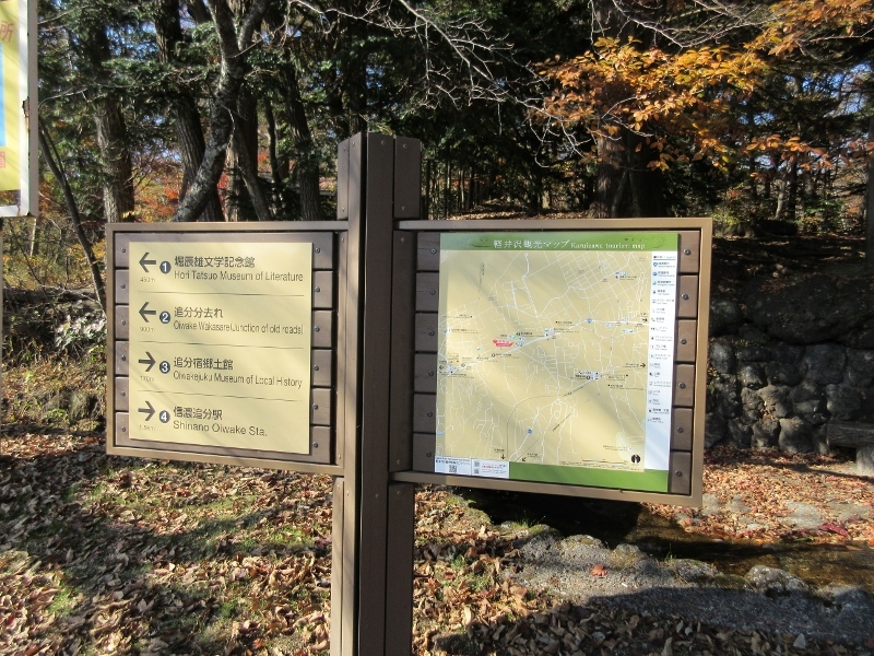 中山道の追分宿ですが、軽井沢にあるので観光名所のようになっていました。宿場町の雰囲気はありませんが、道は歩きやすく整備されていました。昔は碓氷峠を越えて大変だった場所も今は簡単に車で来られます。秋の行楽日和でそれなりに人がいました。
