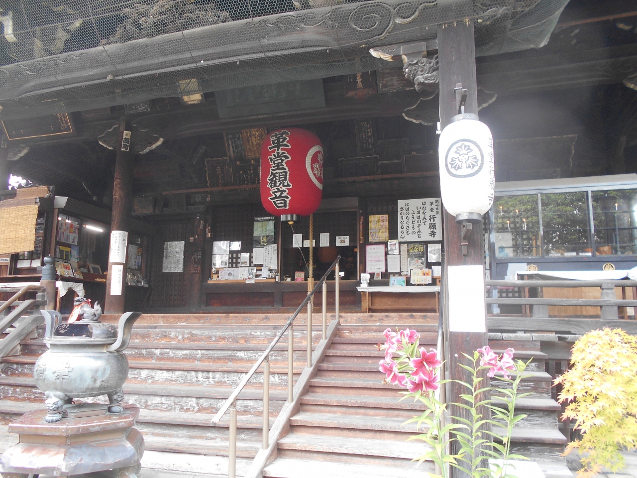 本尊は千手観音菩薩、山門をくぐると目の前に本堂。市街地にあり敷地が狭いところに沢山の植物鉢が置かれているので、ちょっと窮屈な感じがします。地元固有のふじばかまと蓮を大切に育てておられるようです。拝観料は無料ですが本堂の中には入れません。