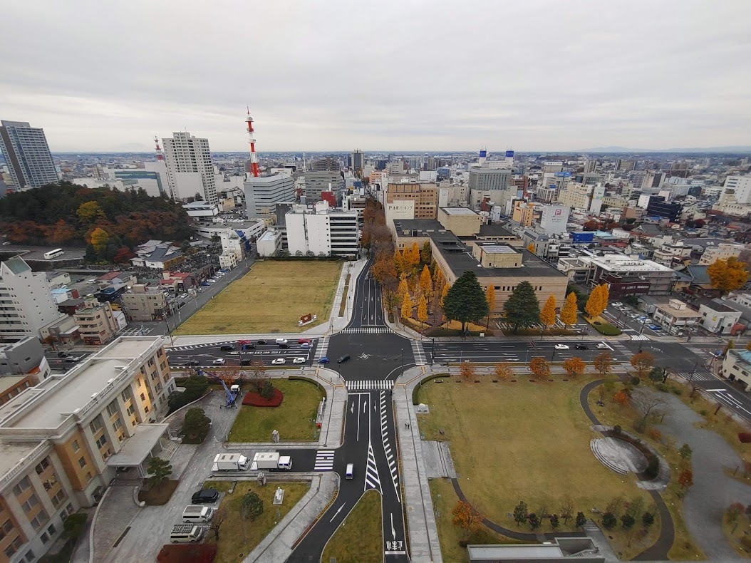 雨雲が広がって薄暗い日曜日でしたが、栃木県庁の展望フロアに立ち寄ってみました。地下の無料駐車場に車をとめ、ストロベーター(いちご塗装のエレベーター)に乗ってイチゴ(15)階へ。こんなに栃木県がいちご推しとは知りませんでした。