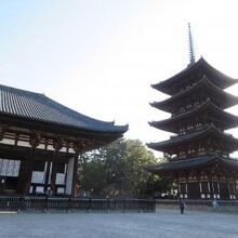 726年に聖武天皇が叔母の元正太上天皇の病気全快を願って建立されたそうです。中金堂の東側にある金堂ということで東金堂と呼ばれる西向きのお堂のようです。こちらも何度も焼亡してしまったようで、現在の建物は1415年に再建されたようです。