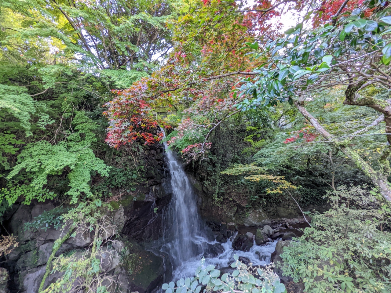散策路は高低差もあり階段もある。滝もあって、無料の小さな足湯もあった