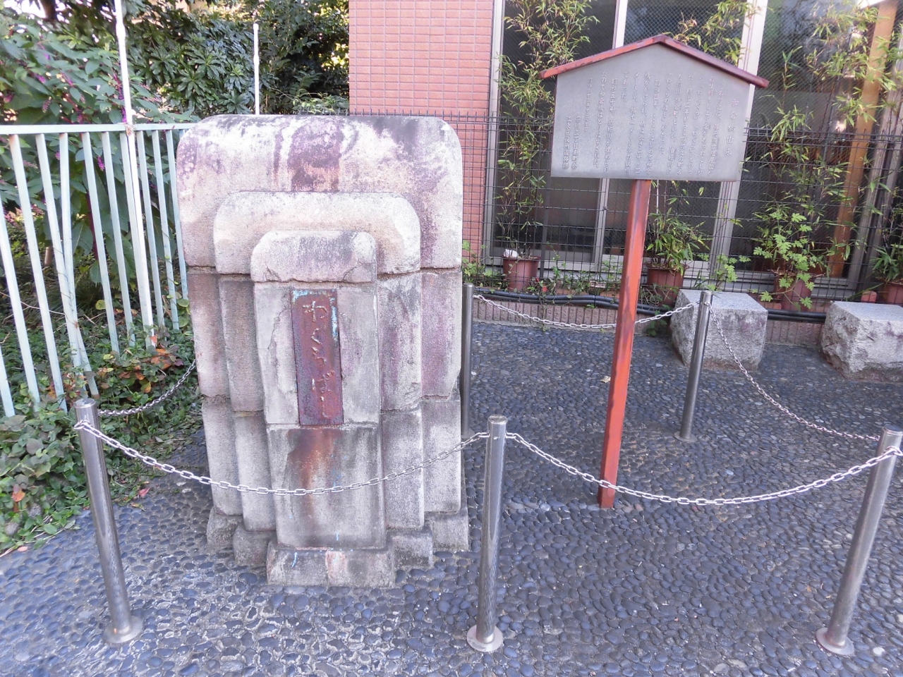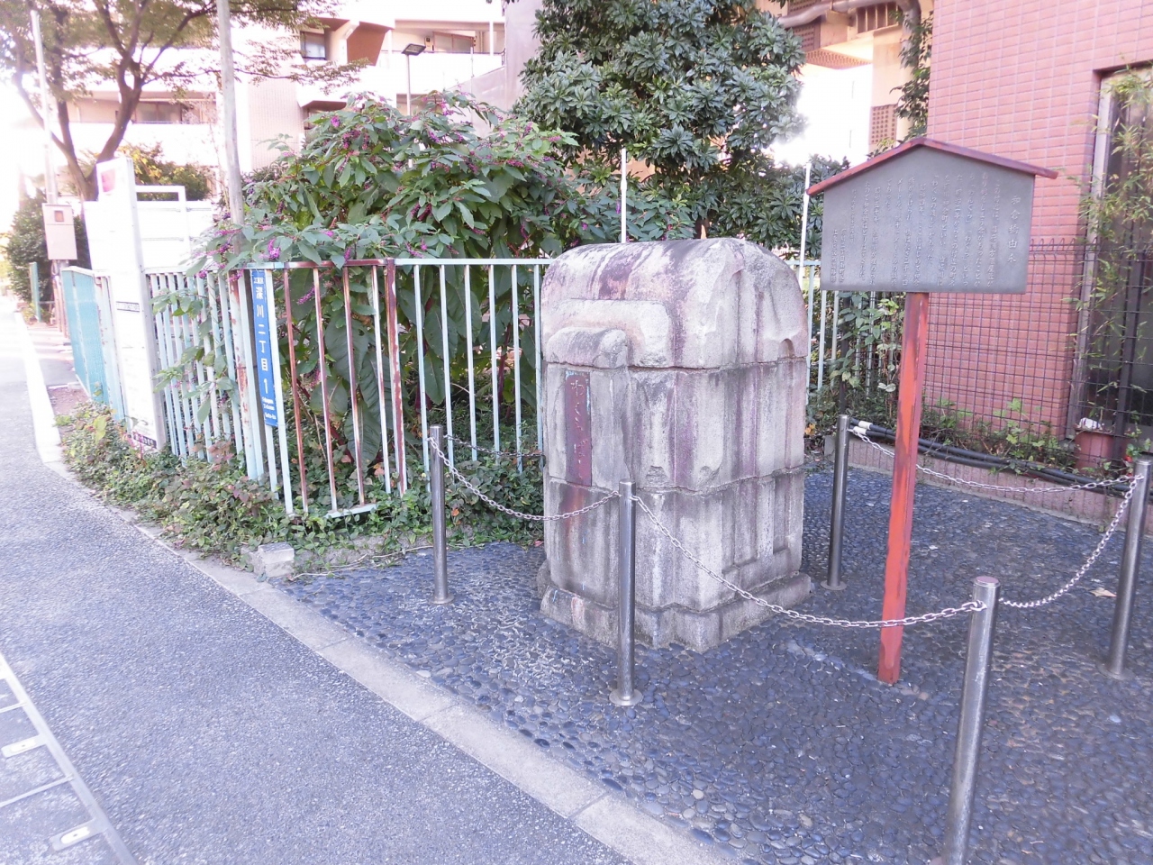 深川近辺を散策中に立ち寄りました。場所としては富岡八幡宮の裏手で、首都高速9号深川線のちょうど高架下になります。今は水の流れもなくて、ただ石造りの親柱が、チェーンの柵に囲われて残されているだけです。あまり見どころなどもない旧跡でした。