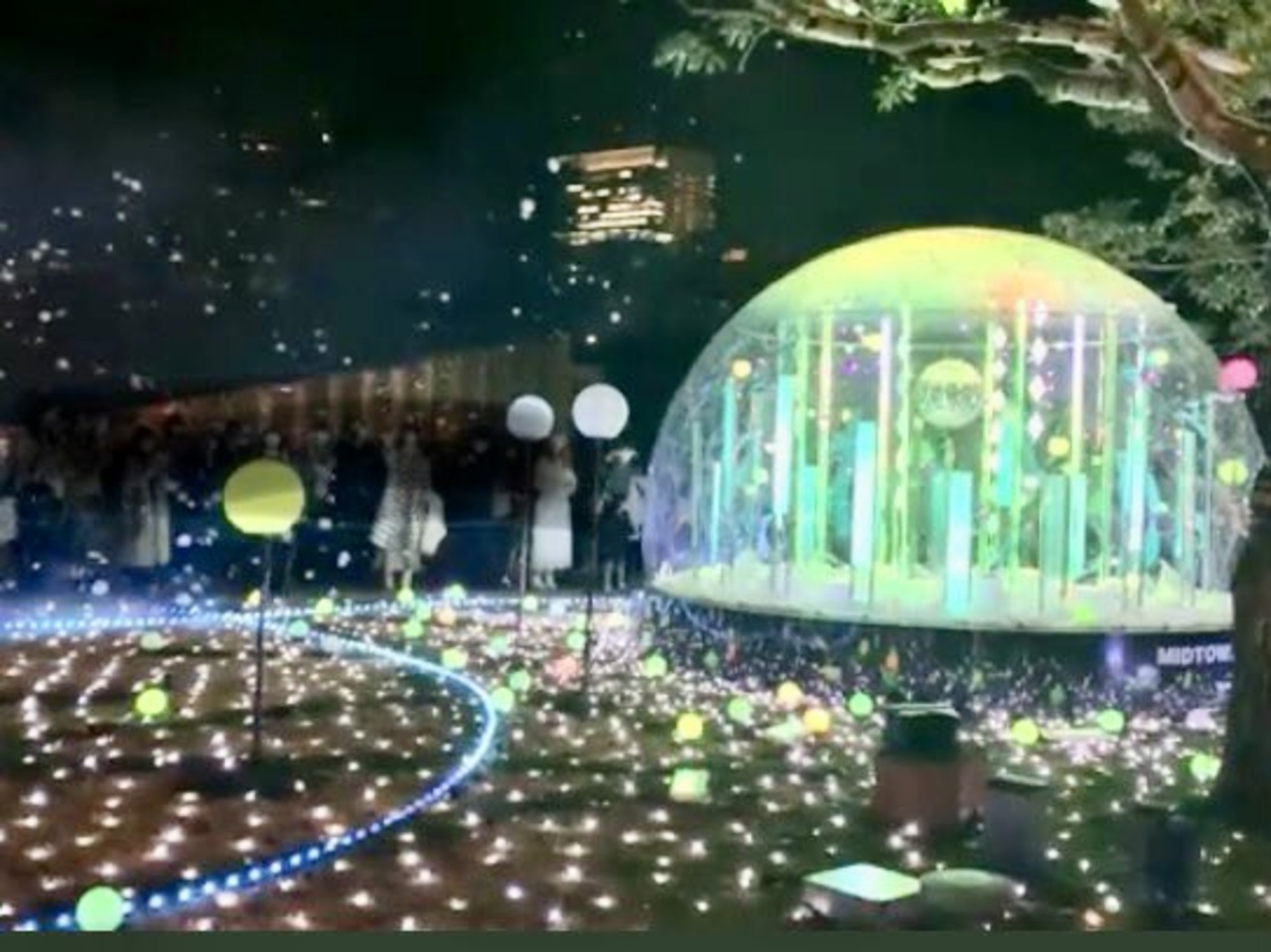 東京出張。食事をした後、ミッドタウンガーデンの、光の散歩道や、イルミネーションを見に行きました。一面に広がる多彩な光と音楽の演出と、ふわふわと漂うしゃぼん玉や、スモークを組み合わせたスペシャルな、期間限定の演出を見ることができました。