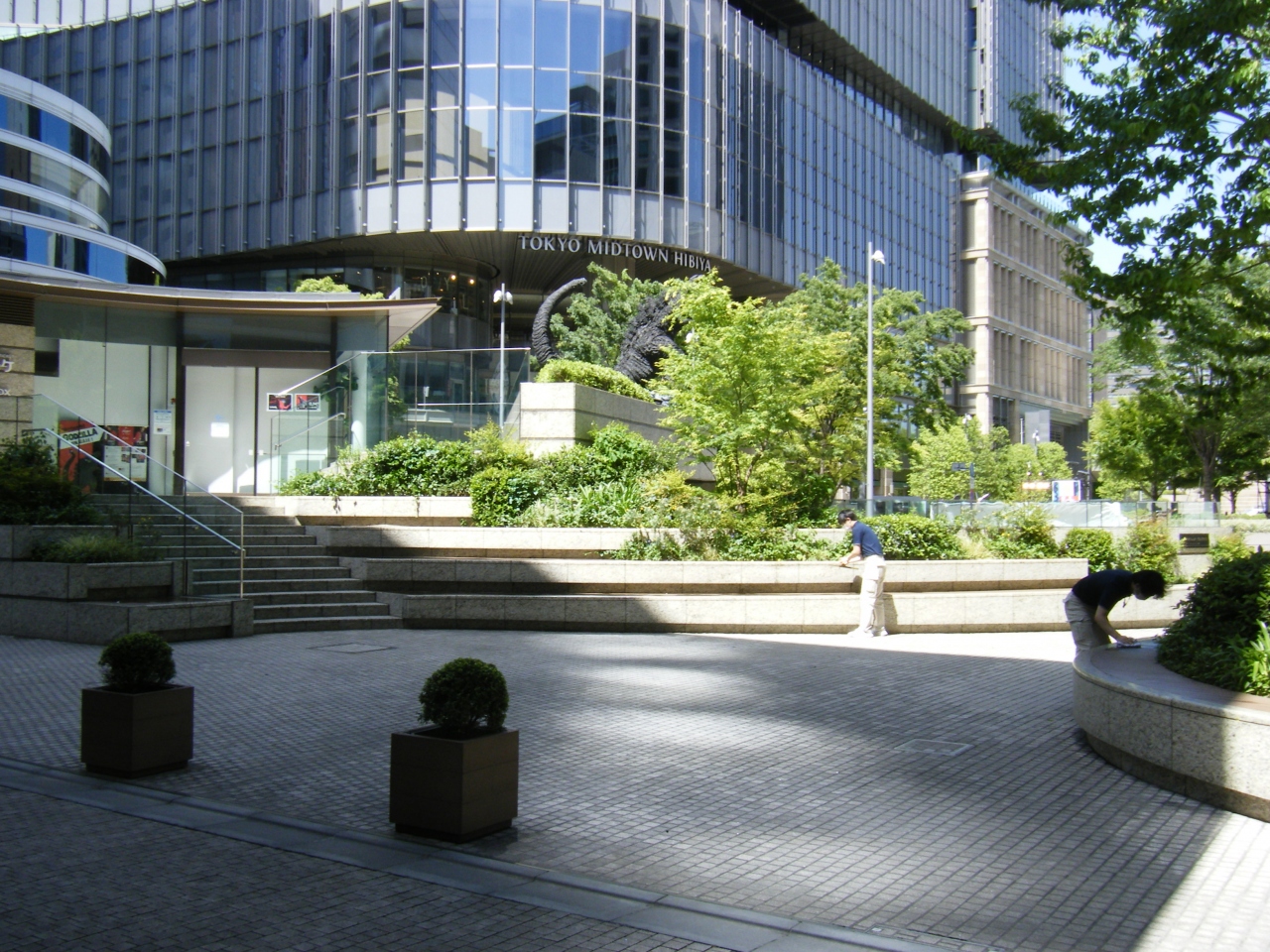 2021年4月に新橋~銀座周辺を散策した際に立ち寄りました。日比谷駅から歩いてすぐの場所にある商業施設「日比谷シャンテ」のすぐ目の前にある広場になります。広場としての規模は小さいですが緑が多く、また新たにゴジラ像なども設置されています。腰を掛けるような場所も多く、ここでちょっと一休みすることも出来ます。名前の由来などはわかりませんでしたが、綺麗な広場で良かったです。