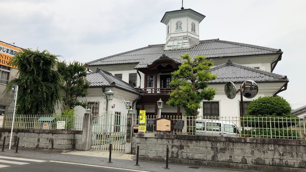 近江八幡の観光エリアの中心にあります。屋根は瓦葺きですが、洋風の建物です。明治時代、学校として建設されました。建設費のほとんどが、近江商人の寄附だったそうです。現在は、観光案内所として利用されています。