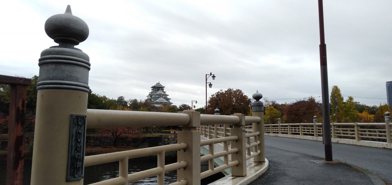 橋を渡った左手には大阪城ホール、右手には桃園があり、周辺では朝夕を問わず、多くのランナーたちが走っています。