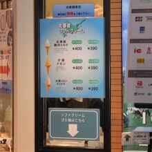 羽田空港で地域のアンテナショップがあるのはここだけではないでしょうか?店頭にどどーんと蝦夷まいたけと生しいたけが販売してありました。810円でしたがまあまあの大きさ。定番のソフトクリームもありました。券売機で事前に食券を買うシステムでした。ミルク、夕張メロン、ミックスの三種類で400円です。