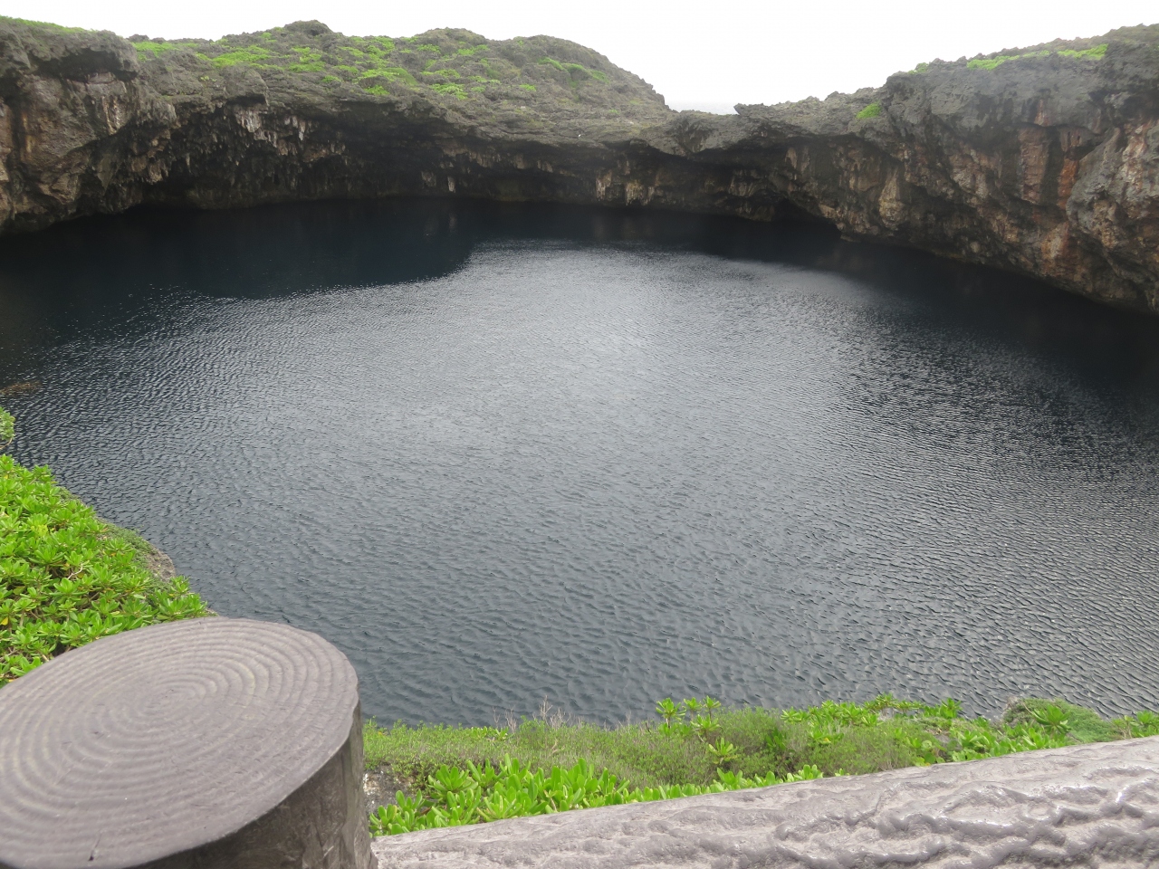 海の近くに2つの池があって、その2つが海水の中ではつながっているというところです。地上から見学したのでつながってるのはわからず、2つの池が並んでいるようにしか見えなかったのですが思ったよりも大きな池でビックリでした。地上だと遊歩道も整備されているので気軽に見学できます。
