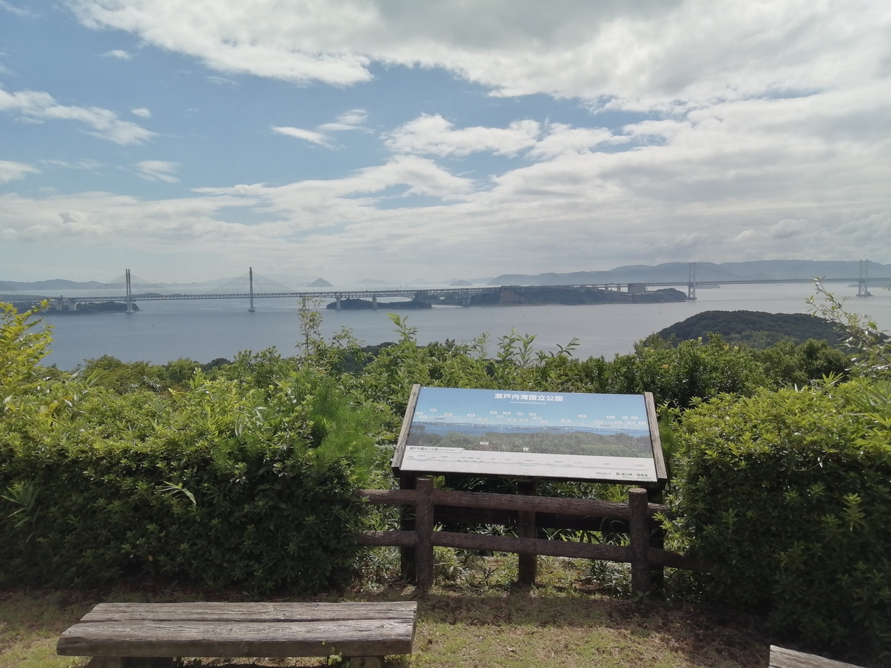 長徳寺の前の道を登っていくと遠見山の登山道入口があります。10分ほど登ると頂上、標高100mそこそこなのであっという間です。展望台があり瀬戸大橋が眺められますが、背後の眺望はないのであまり開放感はありません。笠島集落からも登山道があります。