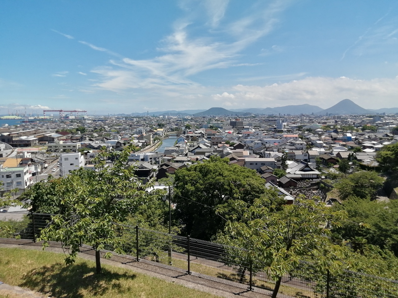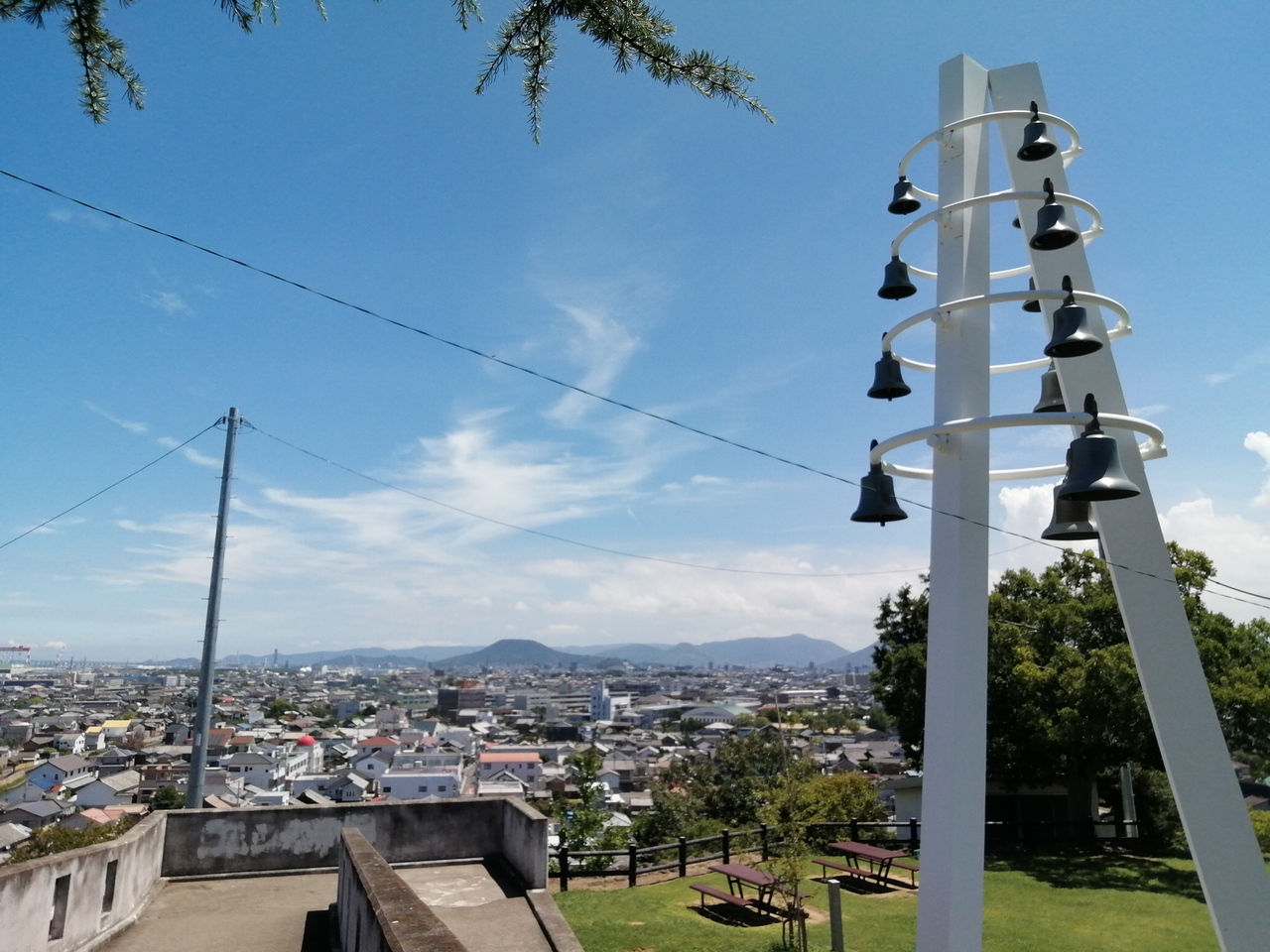 多度津市街の南西に位置する多度津山にある公園。眺めがよさそうだったので行ってみました。中腹にある展望台からは多度津港や町並み、はたまた讃岐富士と呼ばれる飯野山が見渡せます。「一太郎やぁい像」やベルを奏でるメロディー時計「カリヨン」などプチ見所もあります。そしてなんと猿もいます。