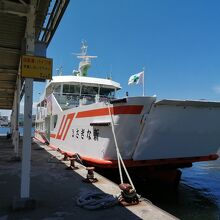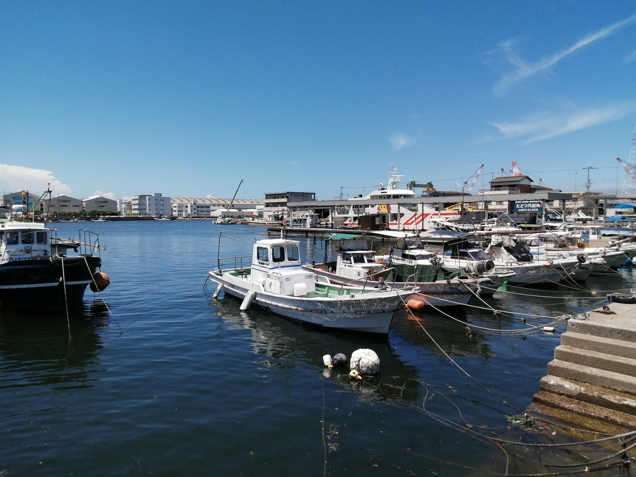 瀬戸内海の塩飽諸島の高見島、佐柳島へのフェリーが発着します。あまり渡航者がいないのかかなり小ぶりなフェリーでした。乗る予定はなかったのですが、コロナ感染防止により渡航自粛要請が出されていました(2022年7月現在)。