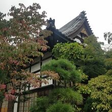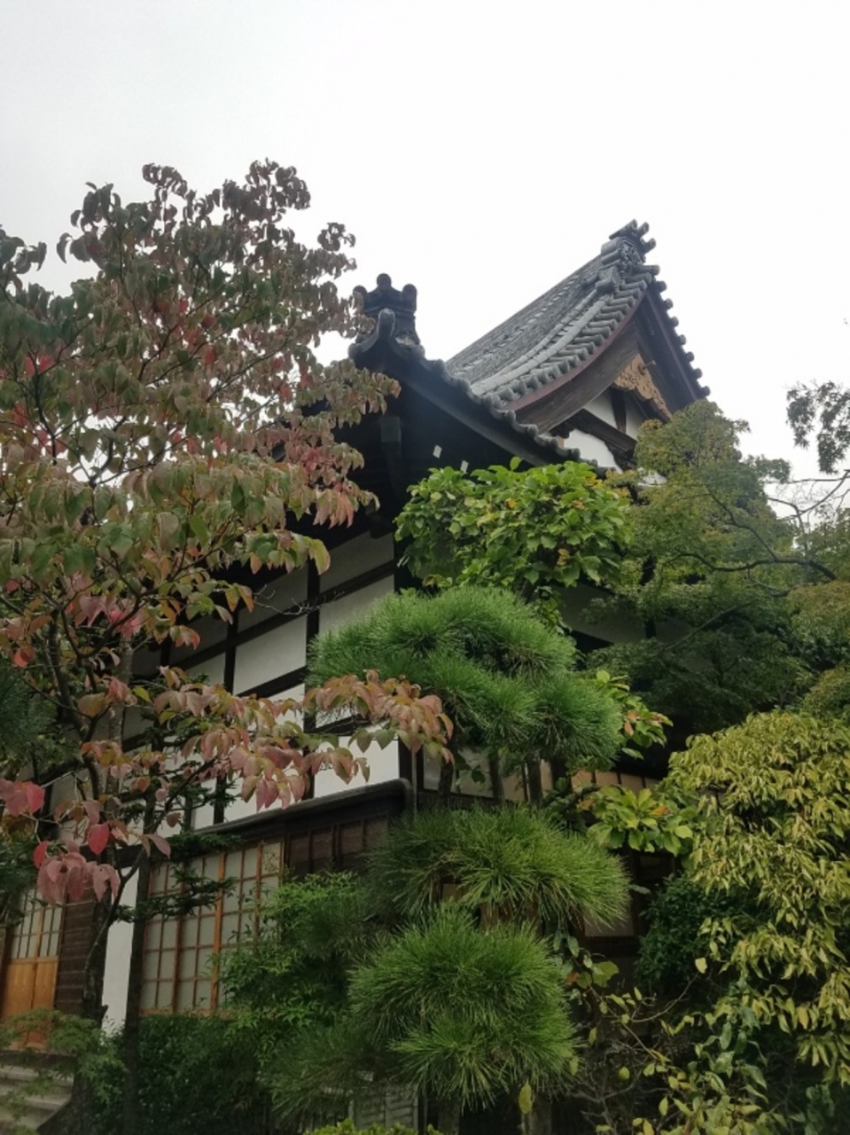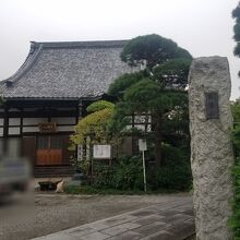 妙善寺のすぐ近くにあります。門をくぐるとオーソドックスな平入の屋根が見えますが建物に近づいて斜め前から見上げると側面の妻入の屋根が垣間見えて見た目の印象がガラリと変わりました。妻入側をもっとよく見たいなと思いつつ寺を後にしましたがなんのことはない、隣の善行寺の境内から妻入の屋根が丸見えでした。