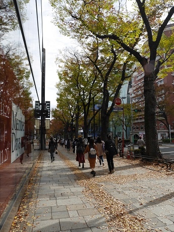 表参道のケヤキ並木を彩るイルミネーションですが、昼間は薄っすら色付いたケヤキ並木が美しい、歩道に落ちた枯れ葉が何とも言えない趣き有る風景を造り出しています。夜のイルミネーションも良いですが昼間のケヤキ並木を歩くのも良いと思います。