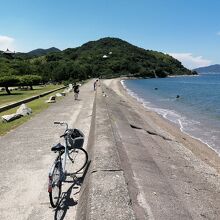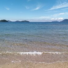 多度津市街の南西約3km、弘田川河口の西側一帯の海岸が屏風ヶ浦です。ちょうど海岸寺の裏辺り。駐車場も兼ねた公園のような広場になっており、海の眺めは抜群で開放感のある素晴らしいロケーション。海の水もきれいで、何人かが海水浴に来ていました。超穴場スポットかも。