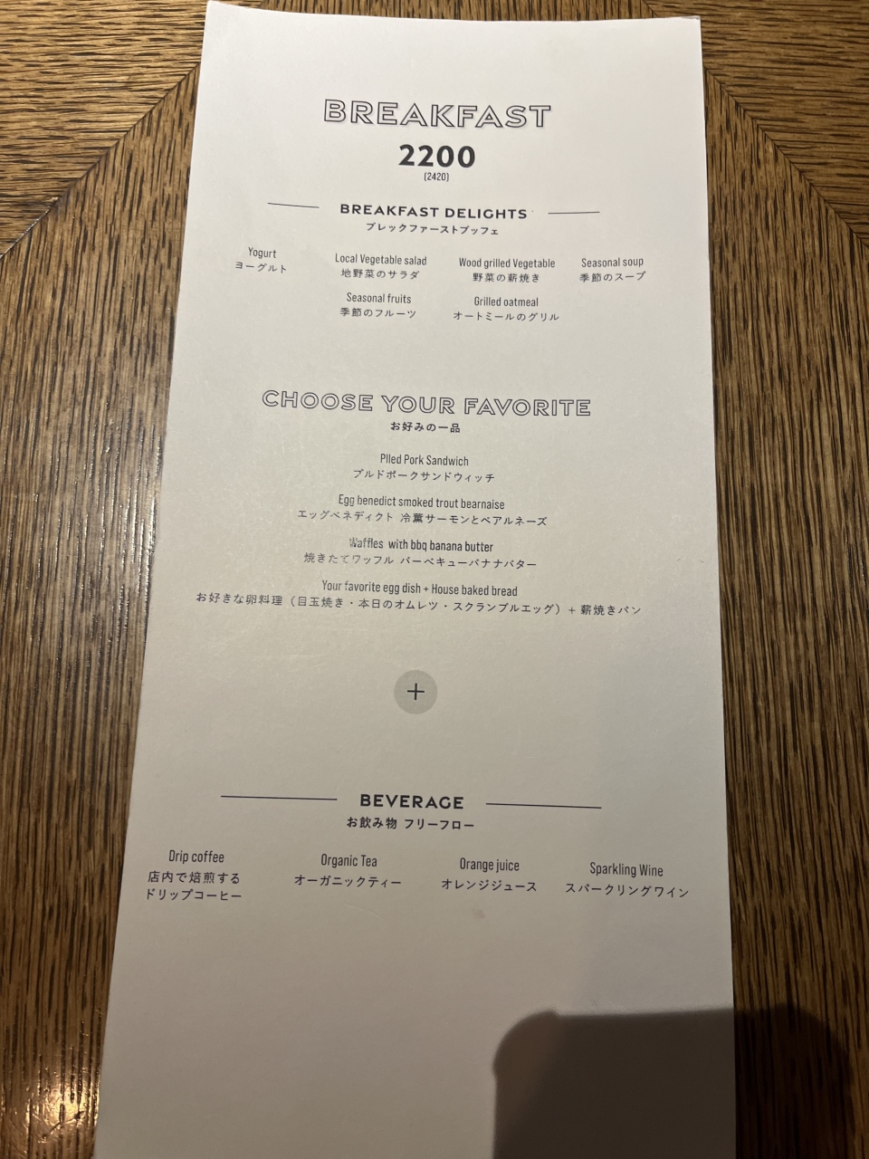 ホテルザノットヨコハマの1階にあるレストランです。宿泊した際に朝食で利用しました。朝食は、メインを一品選んで、その他のサラダなどはビュッフェスタイルでした。「薪火料理レストラン」というコンセプトのレストランで、朝食でも野菜の薪焼きがいただけて美味しかったです。また、朝からスパークリングワインもいただけます。