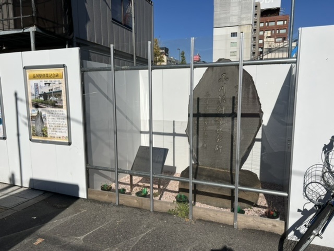 もともとはロータリーの中にありましたが高輪口の再開発に伴い仮移設ですね。今年は鉄道開業150年の節目の年です。品川駅から横浜駅間が開業してからですね。その品川駅の開業記念碑です。再開発後は何処に移設されるんだろうか?