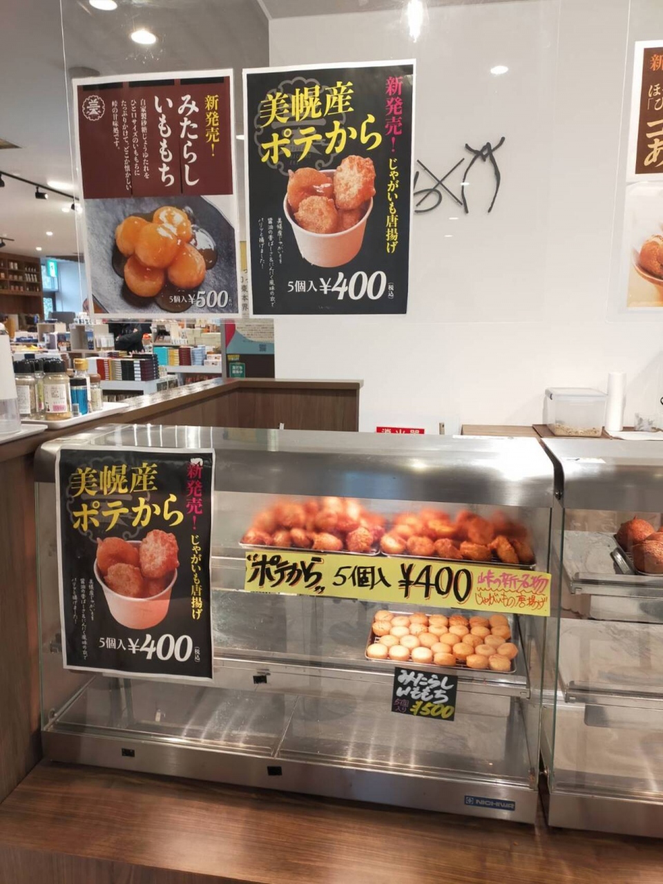 あげいもは、クチコミで高評価だったので、期待しすぎたのか?個人的には、そこまでの美味しさかな?という感じでした。お土産は、かなりおしゃれな感じでしたが、もっと北海道推しのお土産がたくさんあるといいなと思いました。