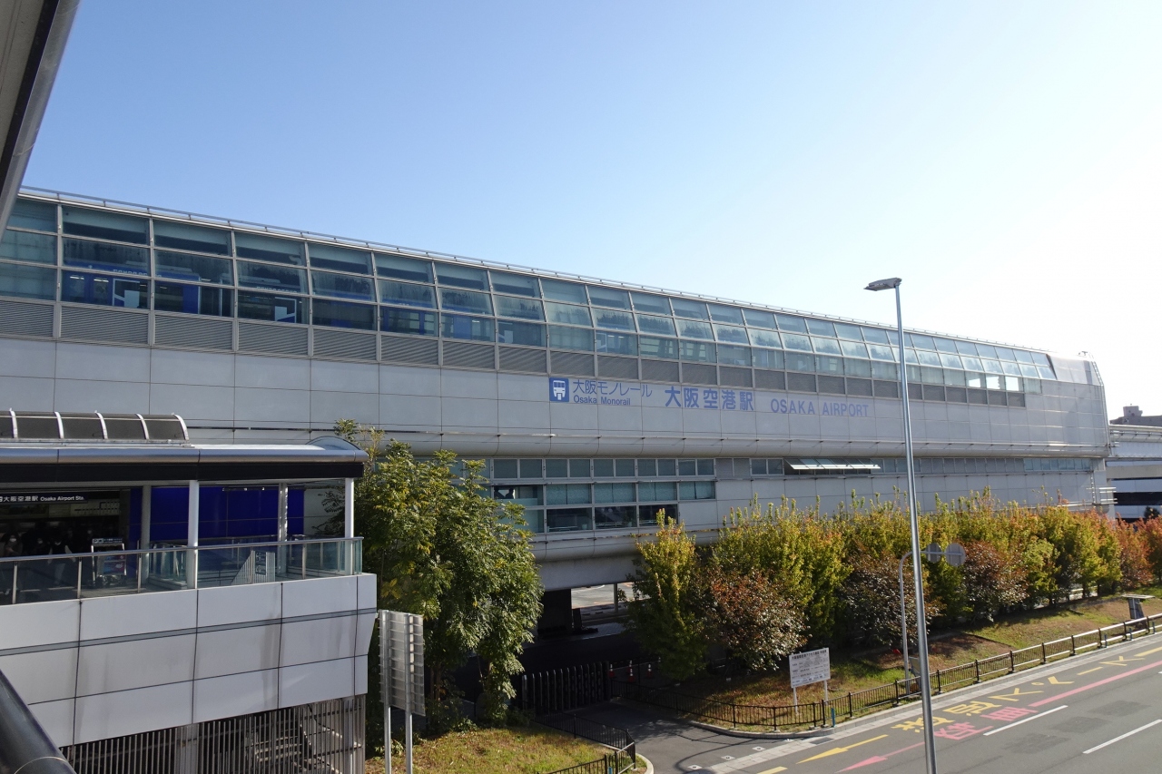 伊丹空港からこのモノレールを利用し蛍池で阪急宝塚線に乗り換えるのが大阪駅への移動の時間が読めます。