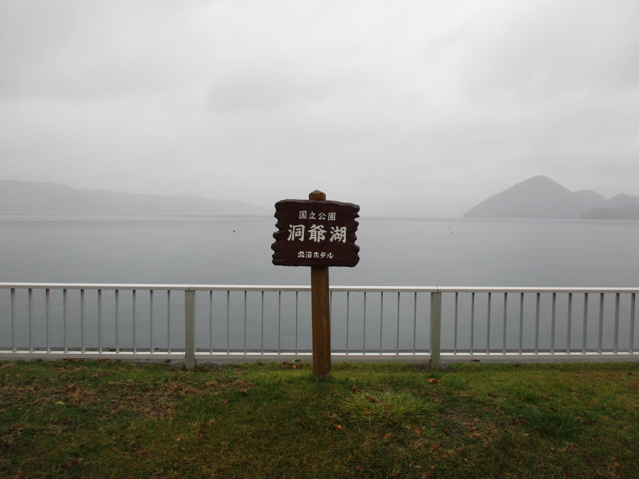 洞爺湖の湖面はいつも穏やかで優しい雰囲気を漂わせています。円形に近い湖の真ん中に中島があり、ぽっかりと浮かんだ様子は童話の世界のようです。ただし、訪問したときは冷たい雨でいい景色は望めませんでしたが、雨音と静かな湖がいつもと違って良かったです。