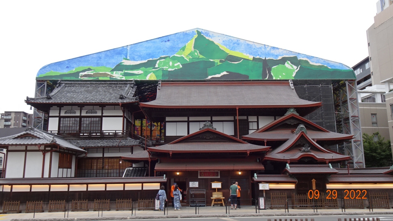 道後温泉本館です。保存修理工事していましたが1Fのみ入浴できます。