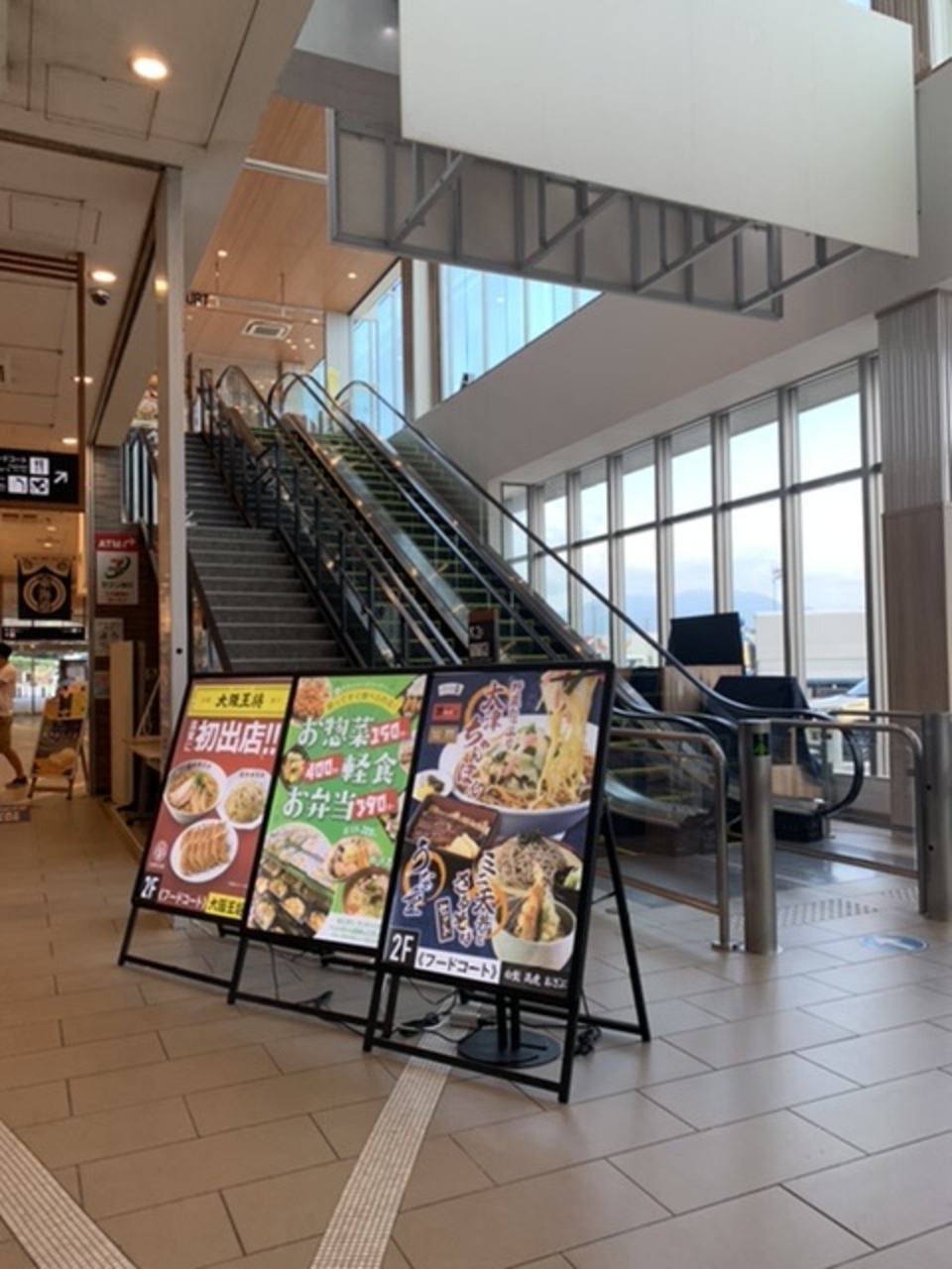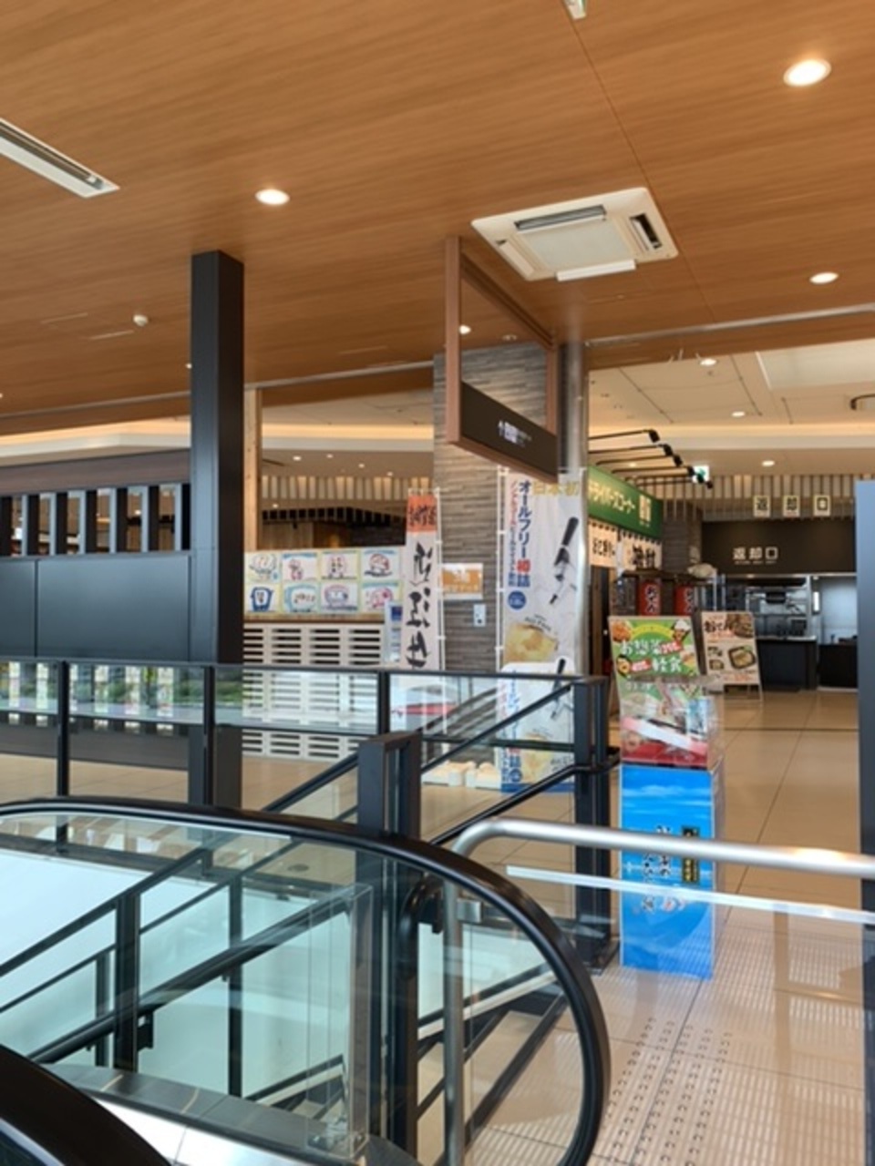 行きは上りを利用しましたが、帰りはこちらを利用。上りのほうが人気店が入っていたりして活気があり混んでいますが、下りは落ち着いています。フードコートも上りに比べると広くて空いていますのでゆっくり食事がしたい方はこちらがおすすめです。