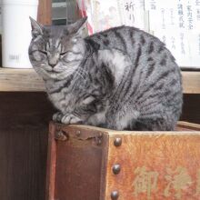 阪急電車松尾大社駅から歩いて行きました。梅宮大社は橘一族の氏神として創建された酒造、子授け、安産の神々を祀る古社です。梅や桜、菖蒲などの名所としても有名です。今まで知らなかったのですが、こちらの神社には猫が多く住んでいます。今回は猫に会いたくて行きました。お昼ごろに行きましたが1匹だけ会えました。社務所のカウンターや賽銭箱の上がお気に入りなのかな? 知らない人が近寄ってもぜんぜん動じません。かわいかったです。