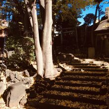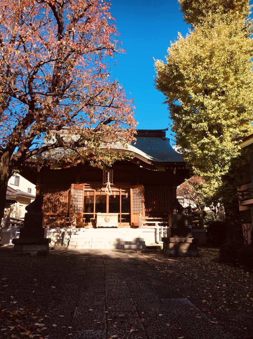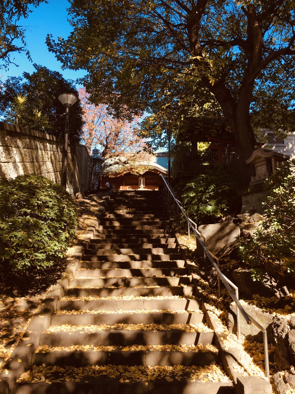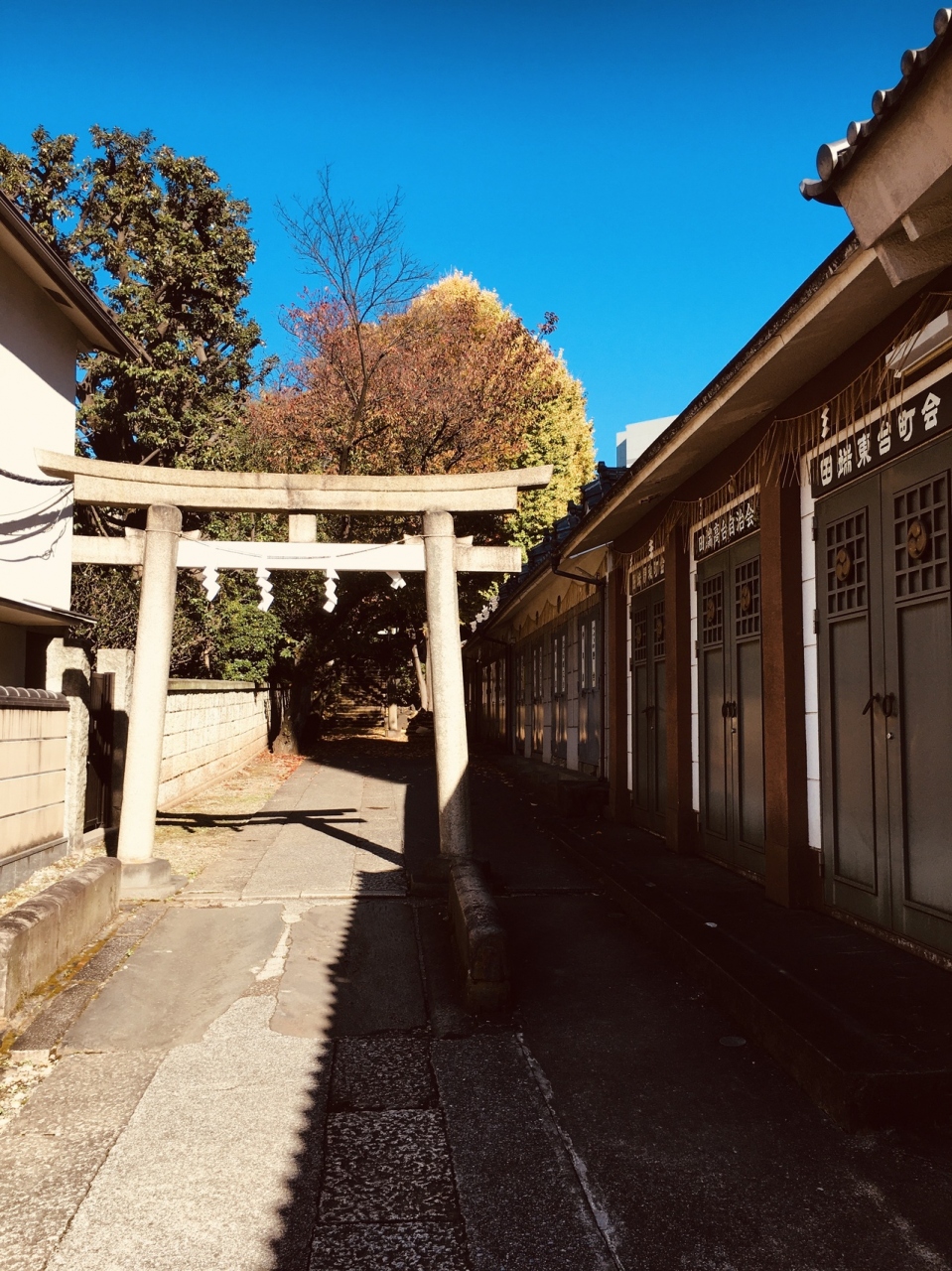 隣りの東覚寺と並んでいて、鳥居を潜ると右側には蔵のようなものが連なっていて神輿庫でした。本殿に向かう階段右側には別に階段があり鳥居等祠があり年季がありました。本殿付近場所狭めで社務所もあり、本殿裏にも出入口があります。
