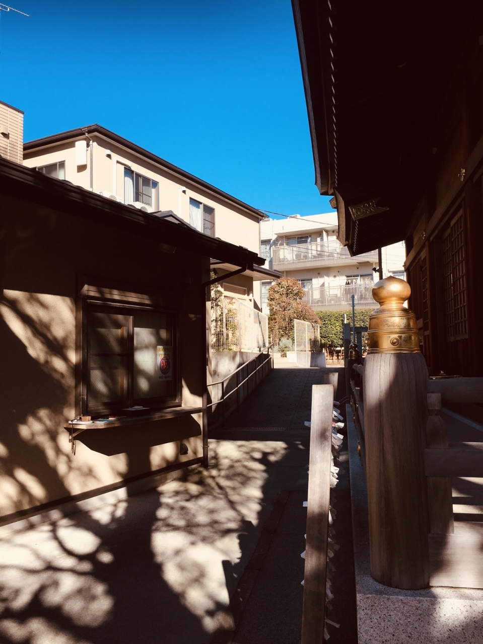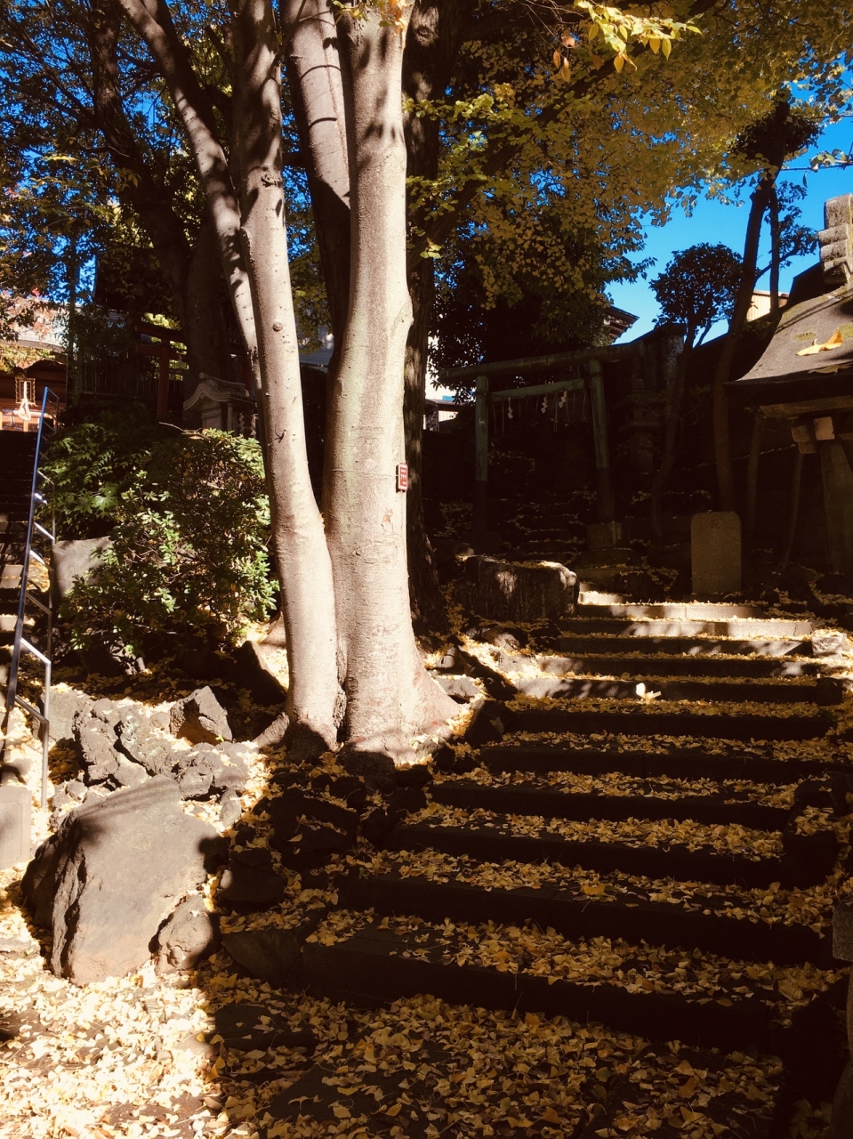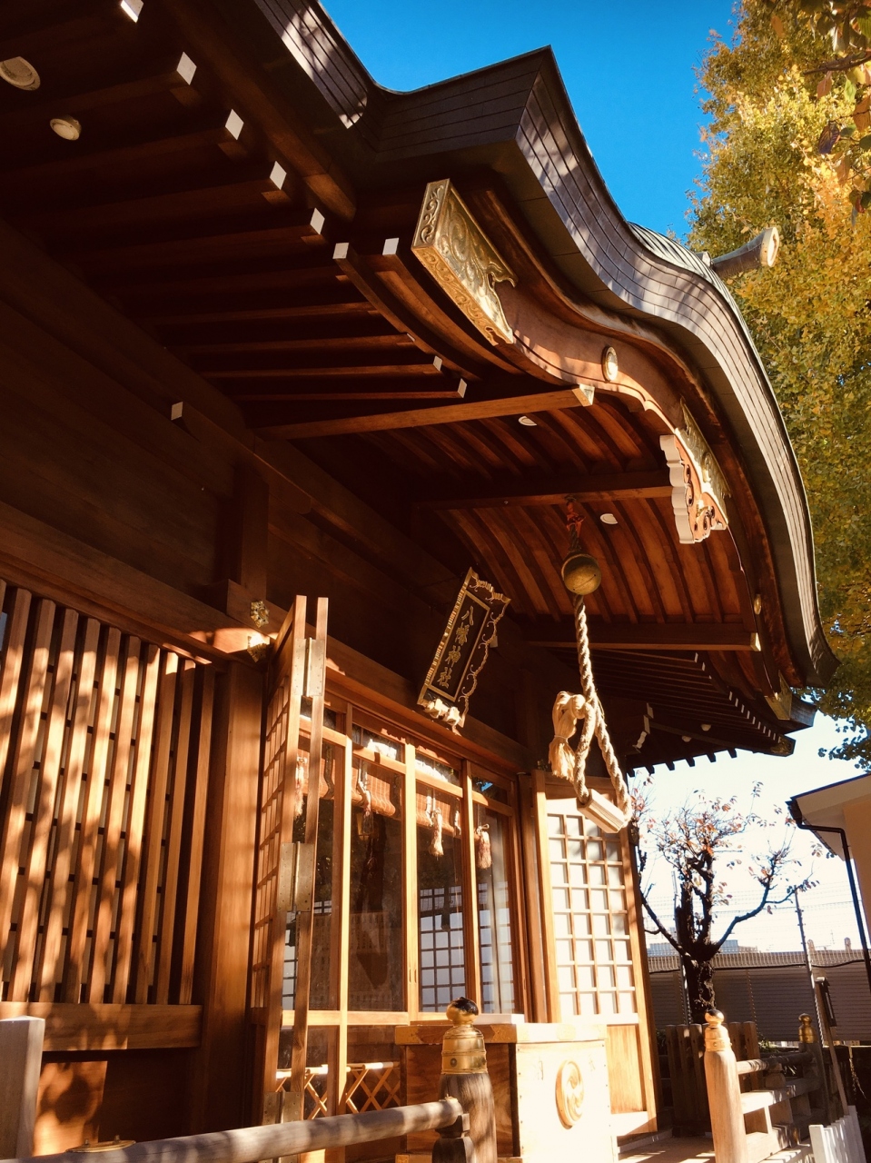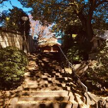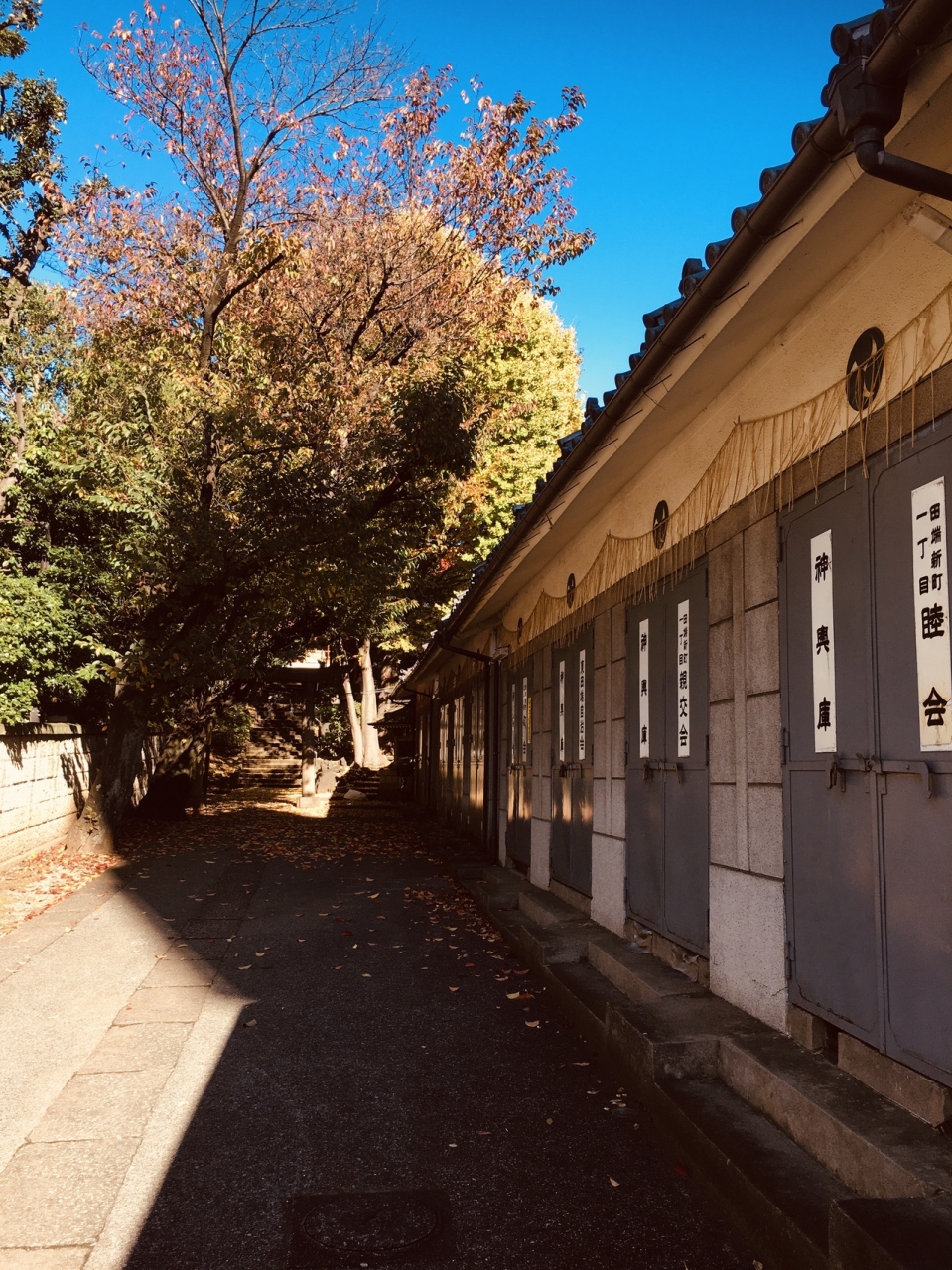 隣りの東覚寺と並んでいて、鳥居を潜ると右側には蔵のようなものが連なっていて神輿庫でした。本殿に向かう階段右側には別に階段があり鳥居等祠があり年季がありました。本殿付近場所狭めで社務所もあり、本殿裏にも出入口があります。