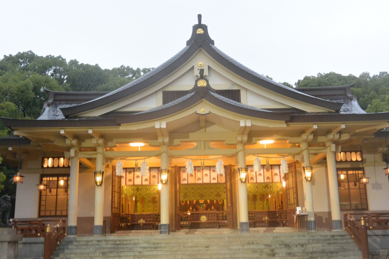 地下鉄の駅を上がったところがすぐ神社なので訪れるにはとても便利。遅い時間で、雨が降っていましたが、灯りがともって、かえっていい雰囲気が味わえたのではないかと思います。けっこう若い人がお参りに来ていました。