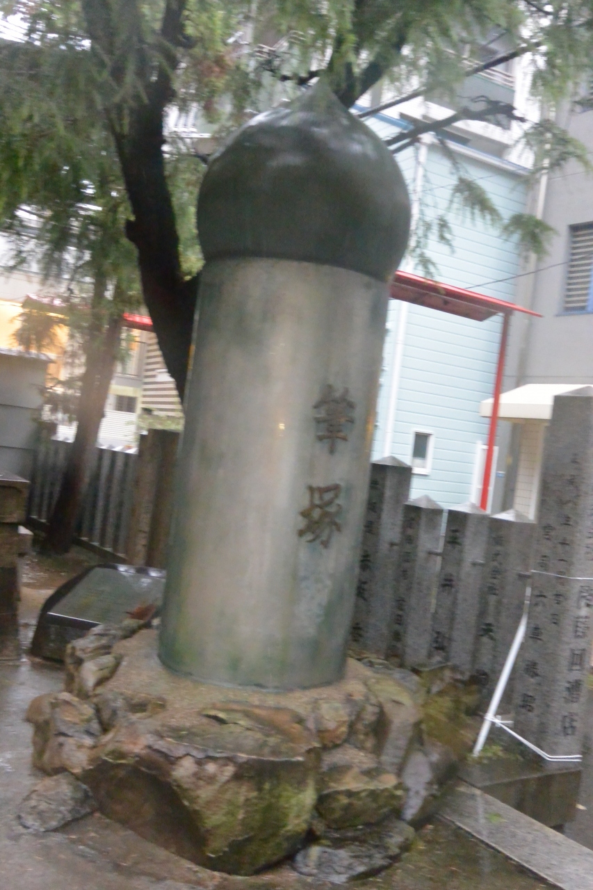 元町商店街を南に一本入ったところにある走水神社の境内、社殿に向かって右側にあります。大きな筆の形をした筆塚ですが、見た感じではそれほど古いものではないように思いました。いくつかの神社で筆塚は見たことがありますが、こちらの神社の筆塚はとりわけ立派でした。