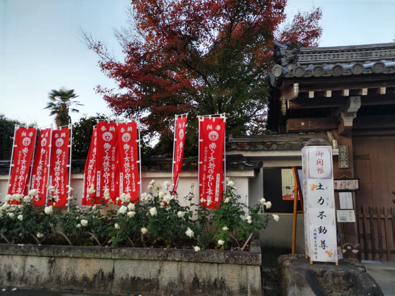 東福寺塔頭である、五大堂同聚院。東福寺駅から東福寺に向かう途中にあります。ご本尊は1006年藤原道長創建、康尚作の十万不動明王(重要文化財)で、祇園の芸妓で胡弓の名手として知られた日本のシンデレラ・モルガンお雪さんの信仰を縁として「働く女性の守り本尊」として信仰されています。