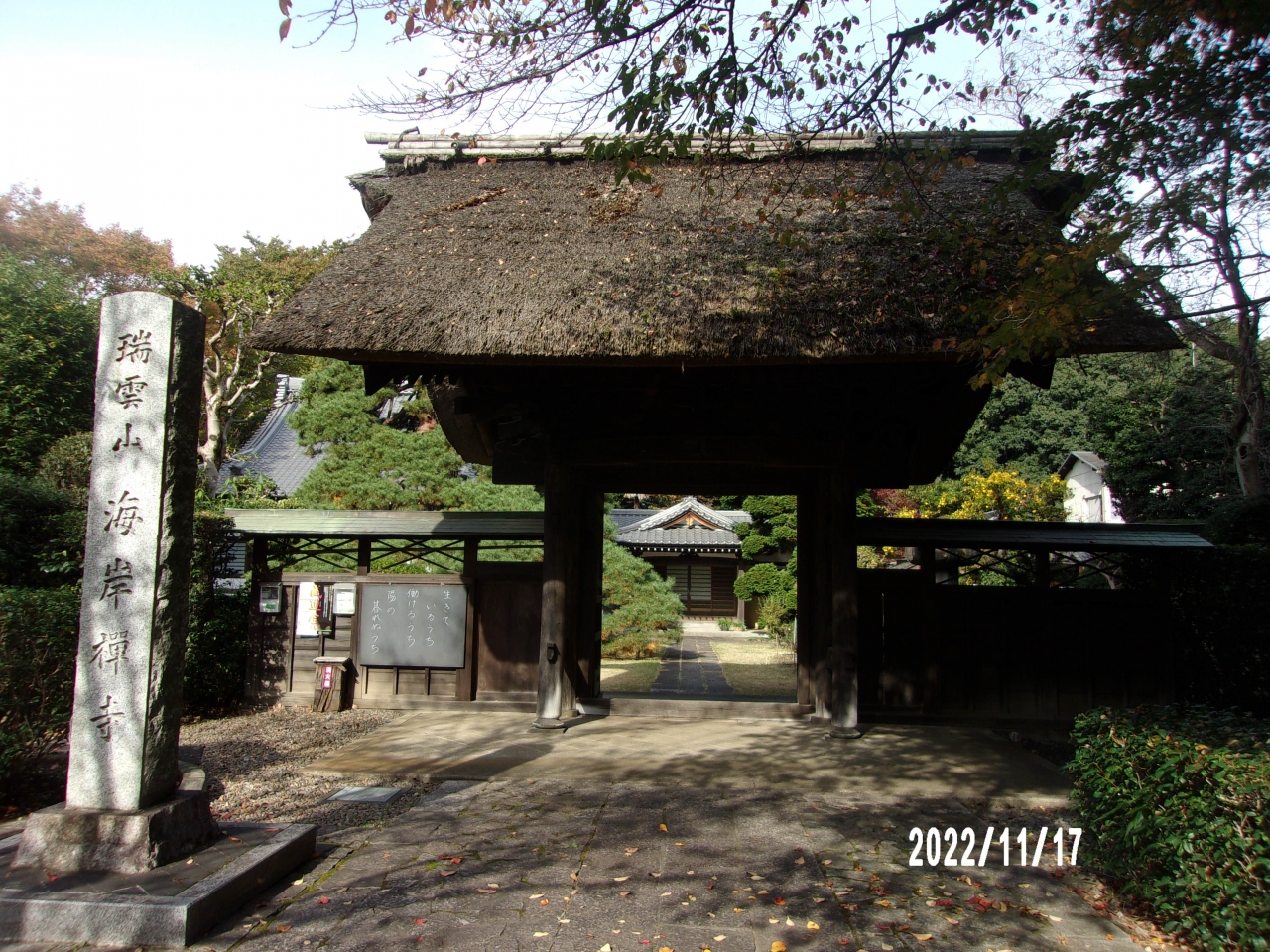 この海岸寺は玉川上水の北側を通る五日市街道沿いにあります。行徳の松とその碑がある場所の近くです。西武新宿線花小金井駅から南西に15分程度の場所にあります。この寺の創建は不明です。現在の場所には18世紀前半に移築されてのです。臨済宗妙心寺派の寺です。本堂も魅力的ですが山門が素晴らしいのです。歴史を感じさせます。存在感があります。