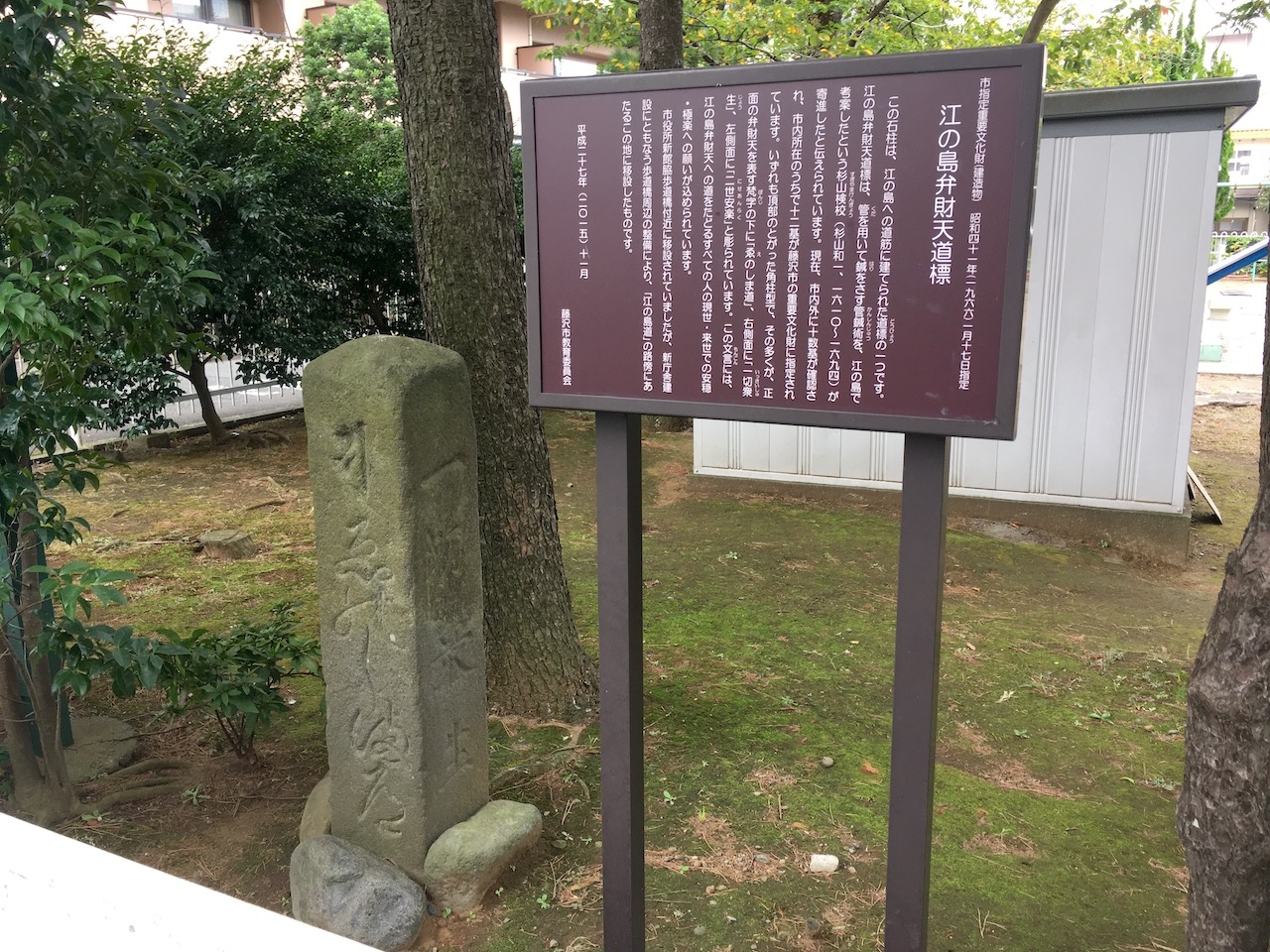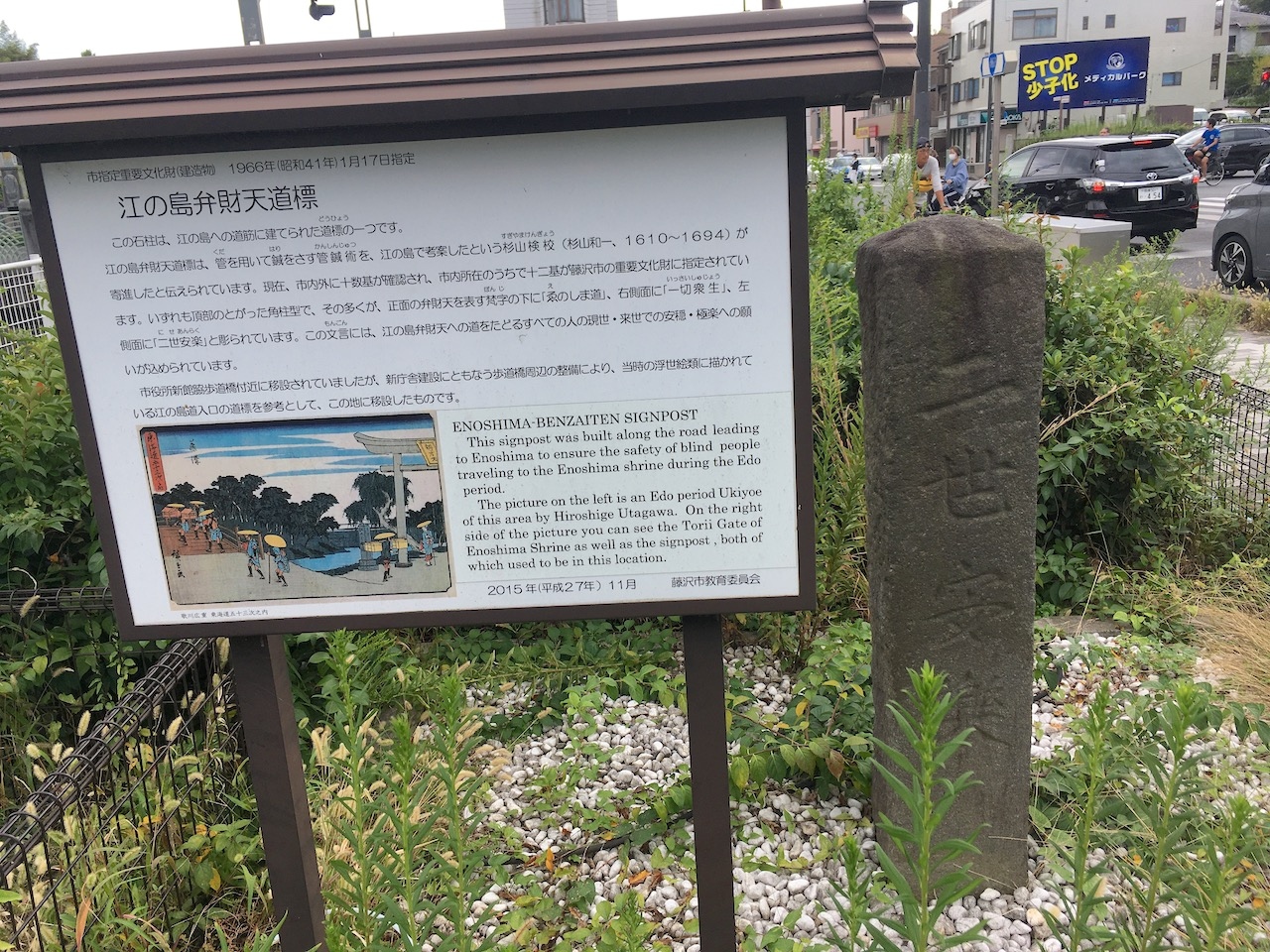 昔に江ノ島までの道しるべとして建てられたものが、現在でも残っています。