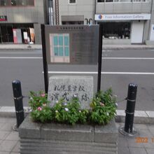 通りの歩道の道路側に、「この場所に、札幌農学校の演武場があった」という表示がありました。